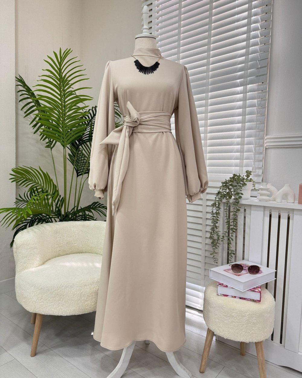 Yeni sezon- Balon koldur -Enseden fermuarlıdır-Kendi kumaşından kalın kemerlidir-