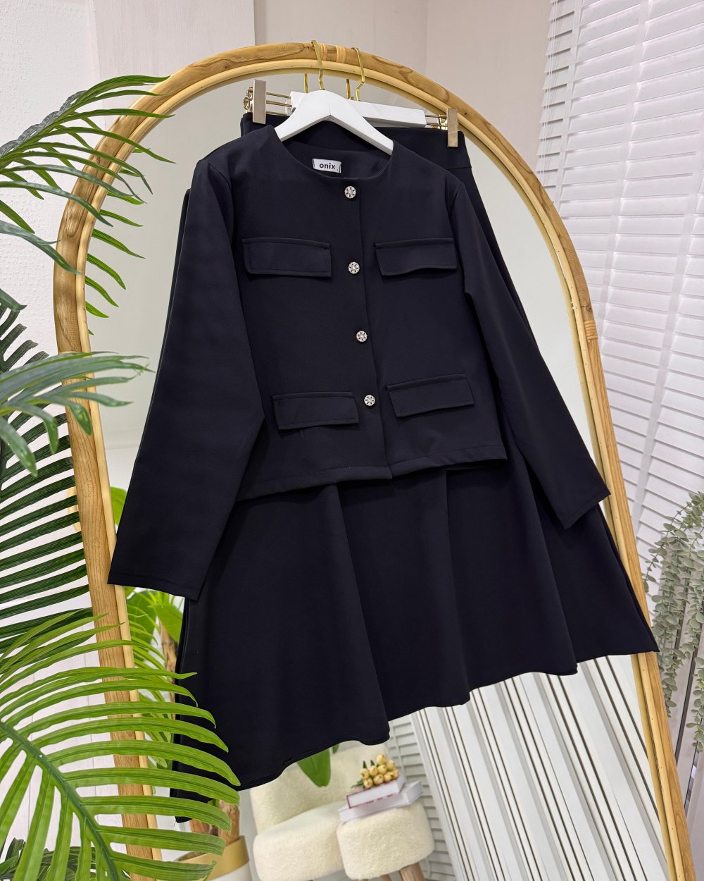 Yeni Sezon-Ceket ön kısmı düğmelidir ve süs cep görünümlüdür -Etek Bel kısmı arkadan fermuarlıdır