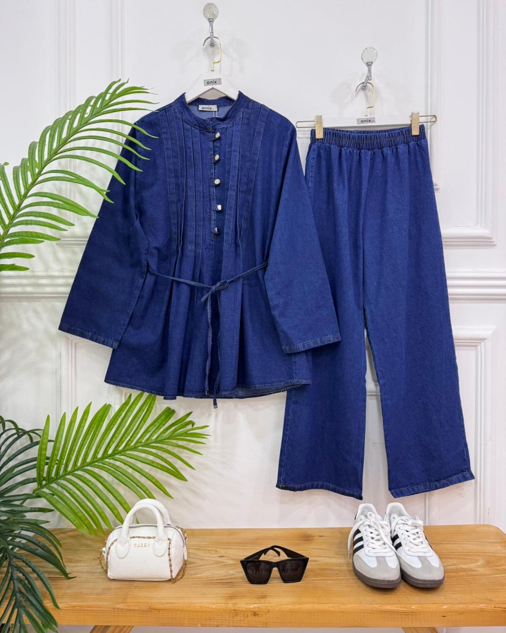 Yeni sezon-Ön kısmı nervürlü ve düğmelidir,kendi kumaşından ince kemerlidir-pantolon bel lastiklidir ,bol paçadır