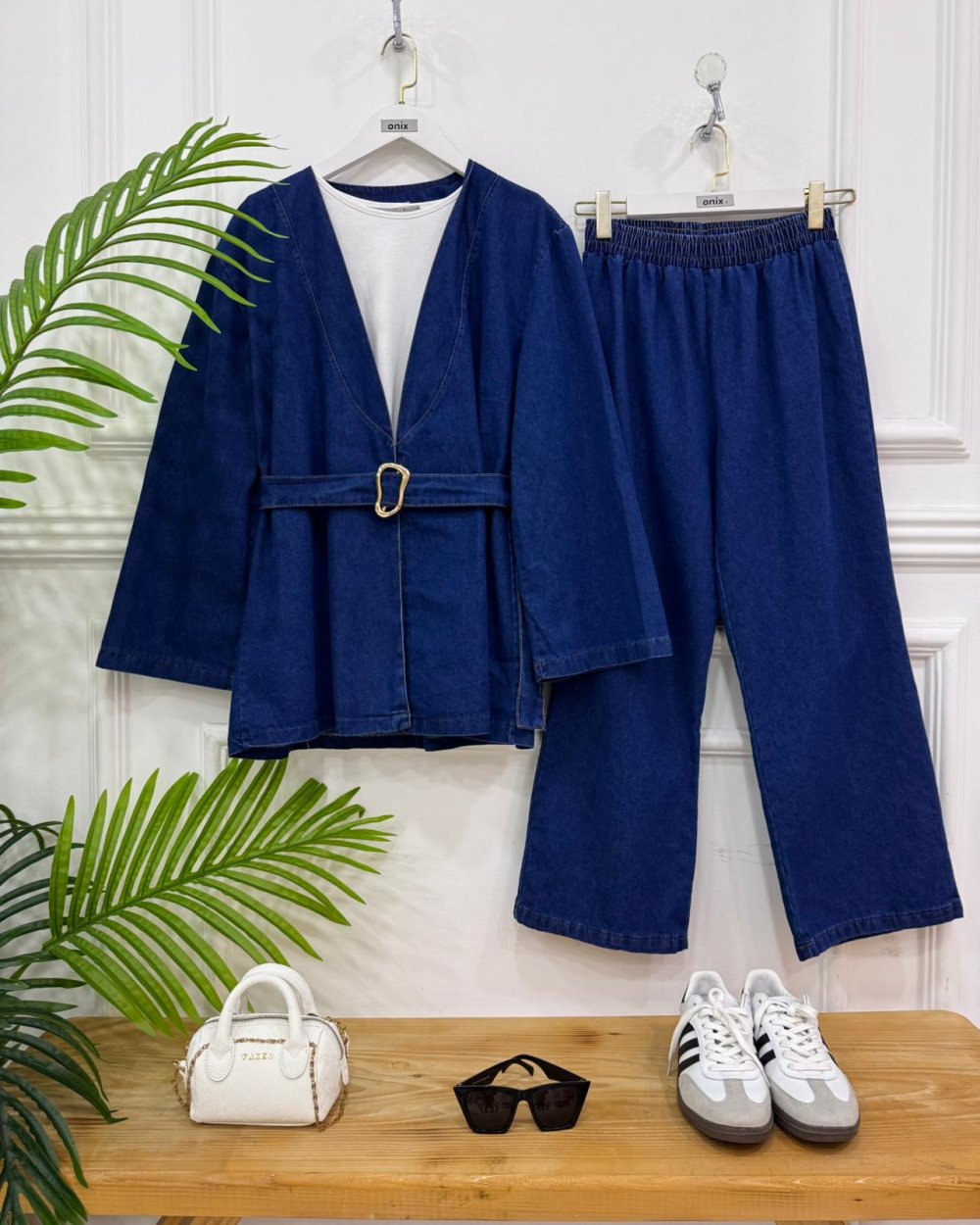 Yeni sezon-kendi kumaşından tokalı kemerlidir-pantolon bel lastiklidir ,bol paçadır