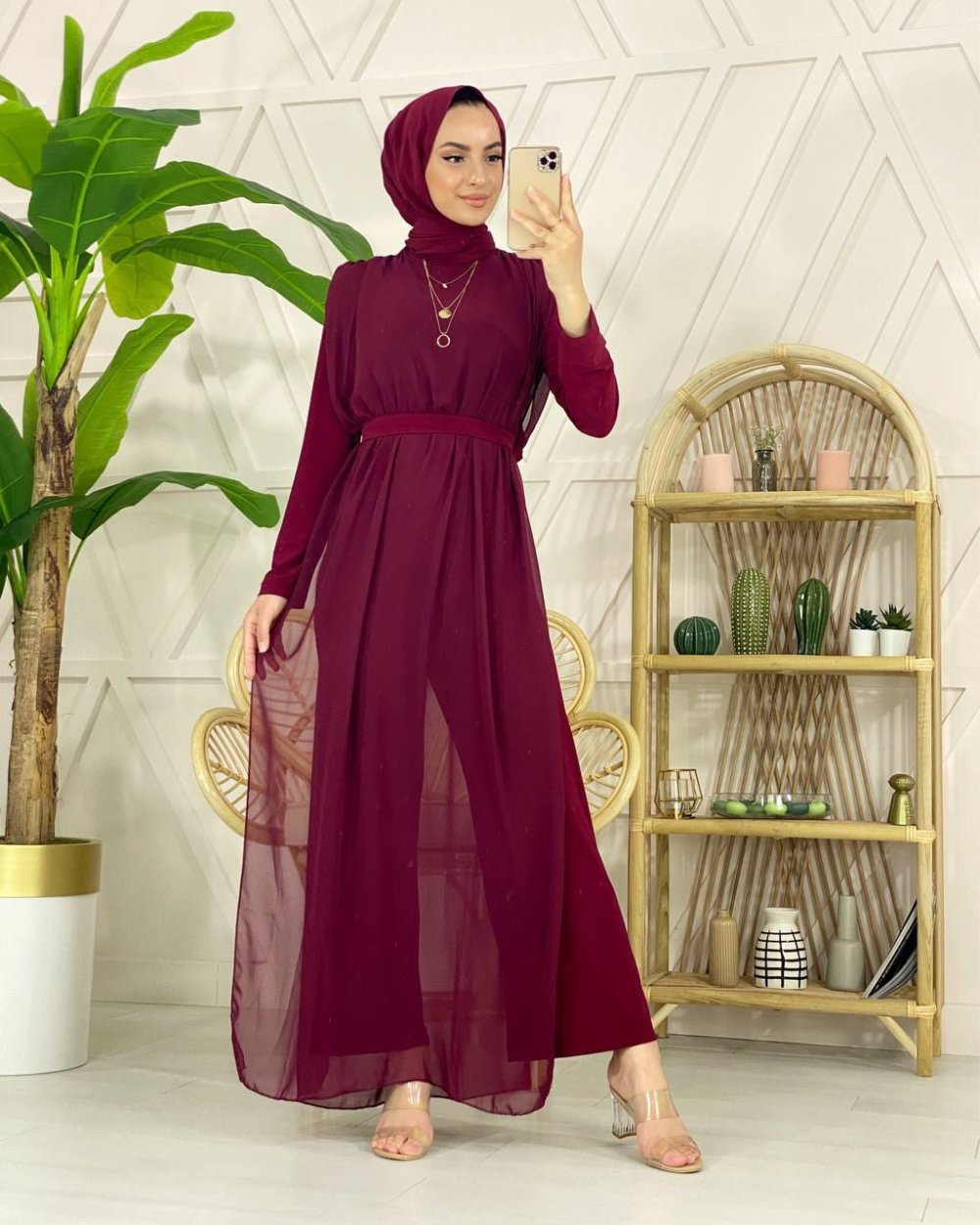 Yeni sezon-Kendi kumaşından kemerlidir-Enseden fermuarlıdır-Dış şifon kumaş omuz üstüne dikilidir