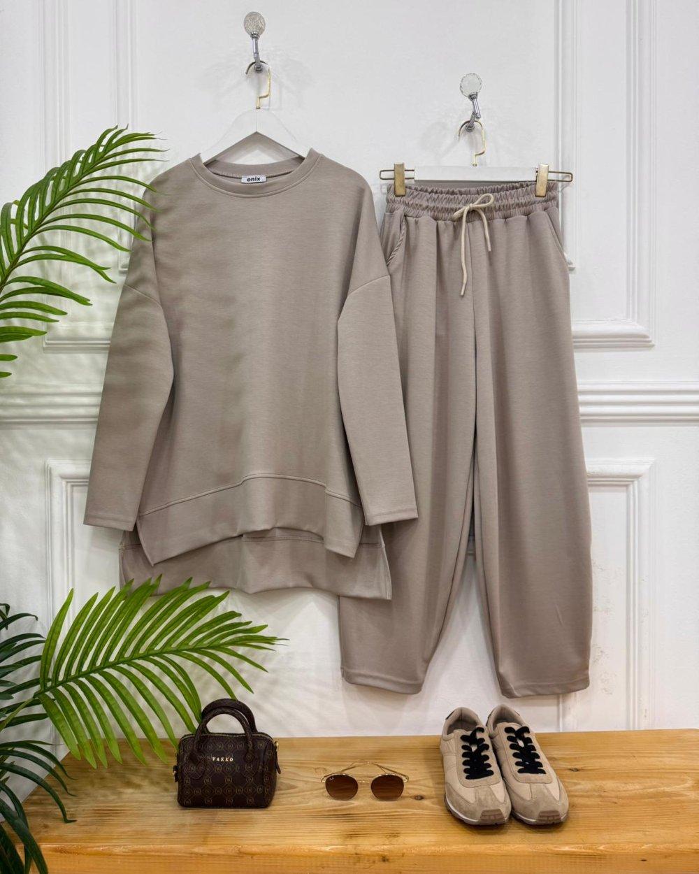 Yeni Sezon-Tunik ön kısmı oval kesimdir,Yanları yırtmaçlıdır,Düşük koldur-Pantolon ceplidir,şalvar kesimdir,bel kısmı sıkıştırılabilen tünelli bağcıklıdır ve lastiklidir