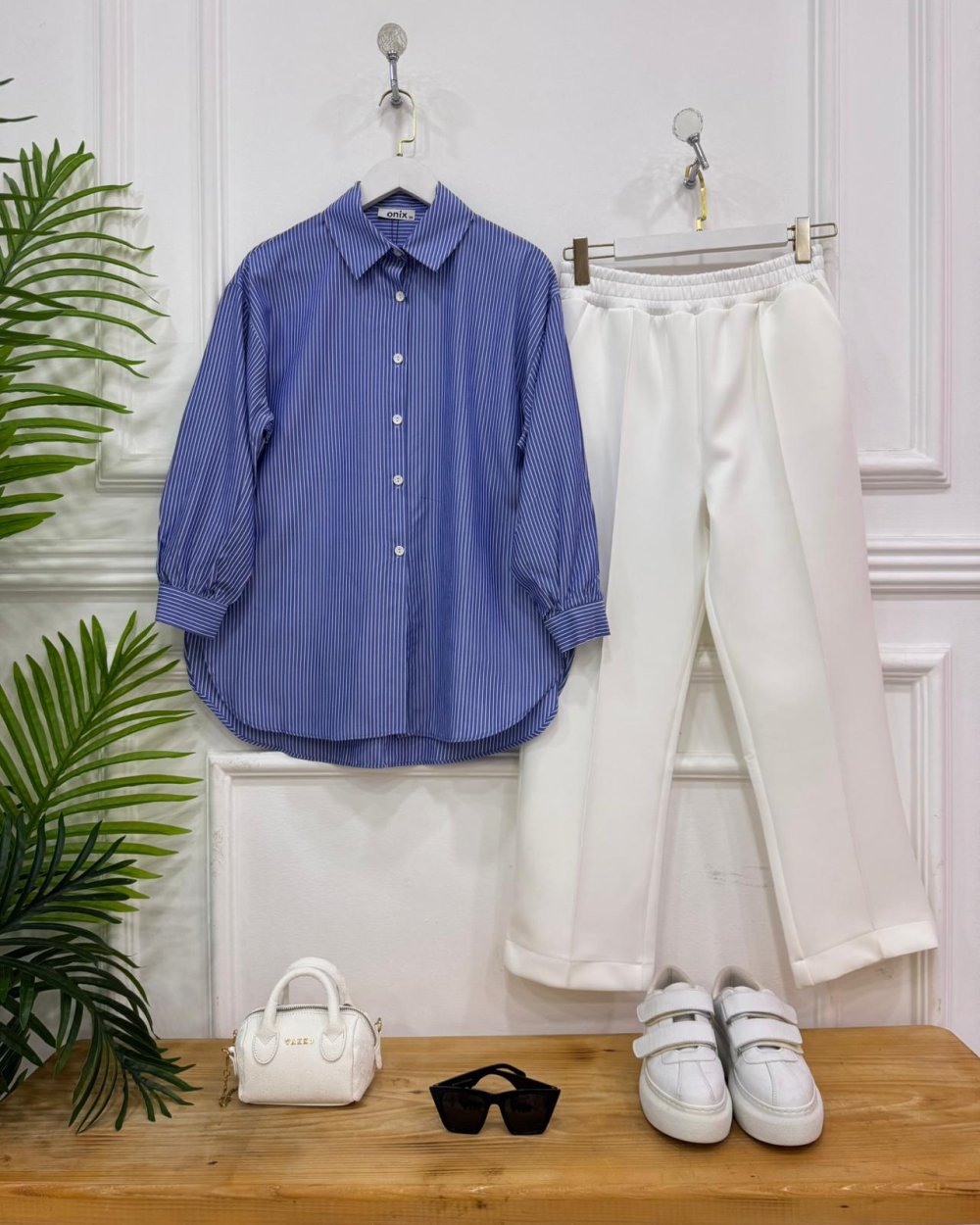 Renk:Mavi gömlek- Ekru pantolon
