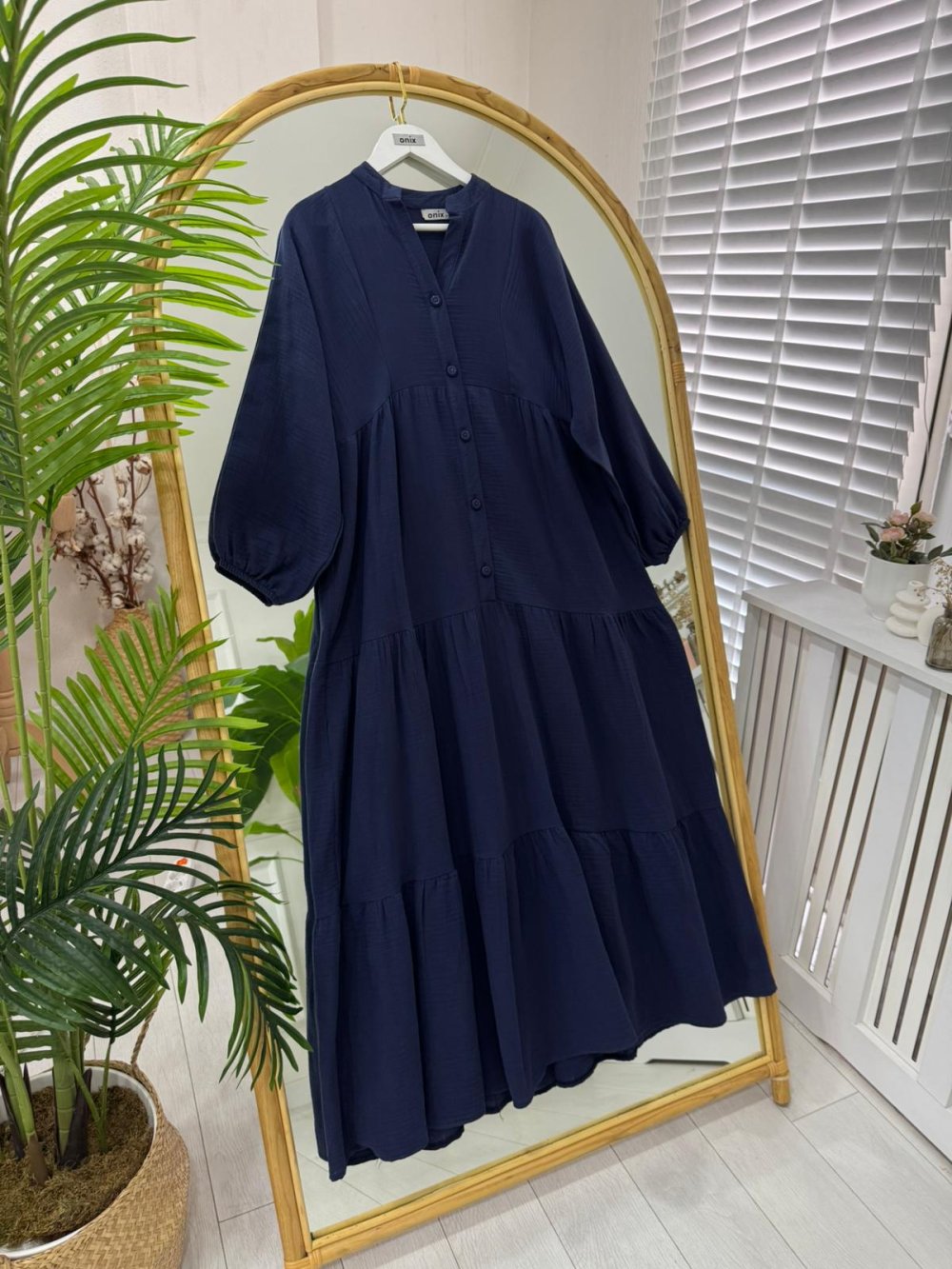 Yeni sezondur-Ön kısmı yarıya kadar düğmelidir-Etek kısmı belden itibaren katlı büzgülüdür -Bilek kısmı lastiklidir-Salaştır