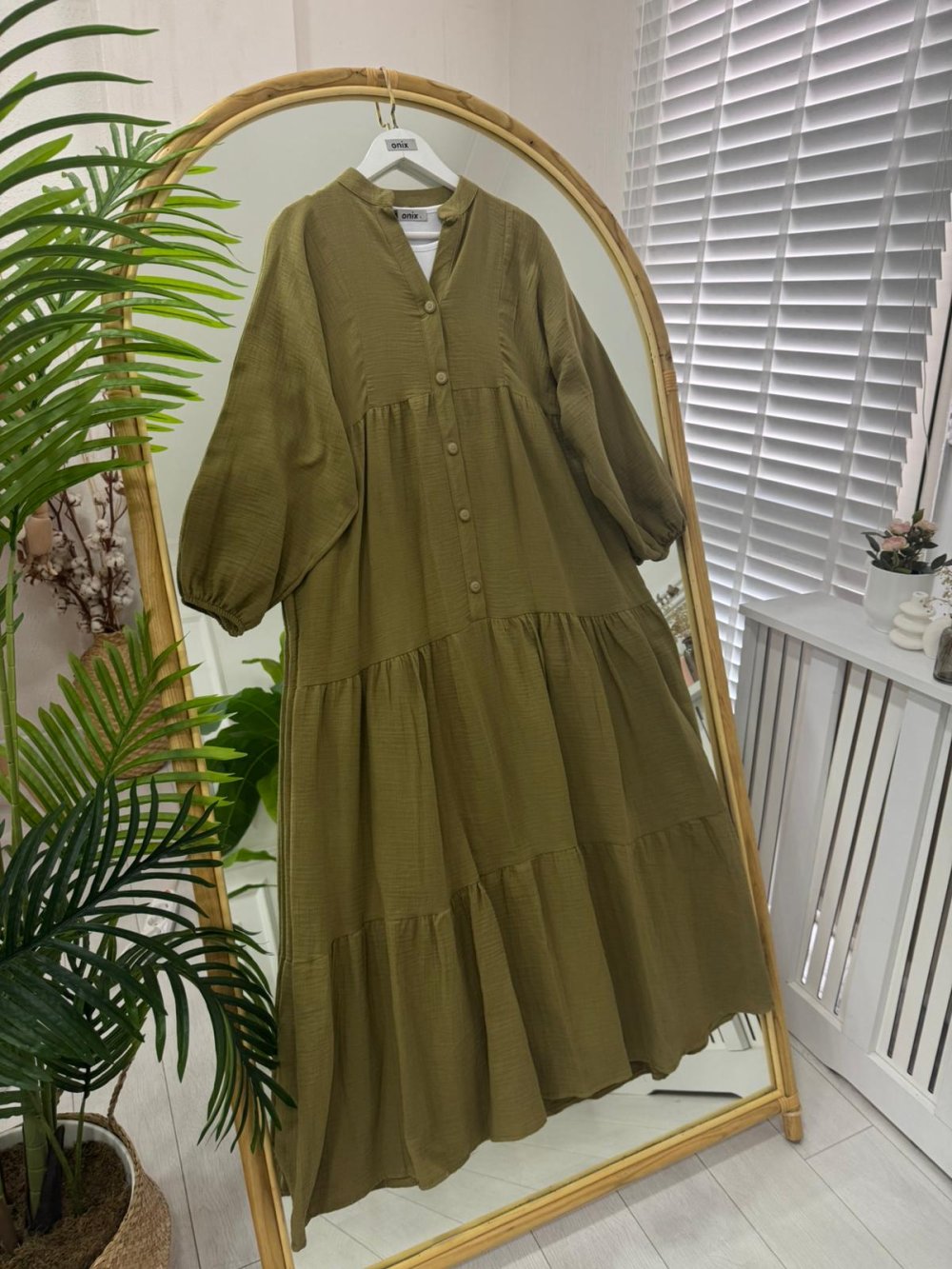 Yeni sezondur-Ön kısmı yarıya kadar düğmelidir-Etek kısmı belden itibaren katlı büzgülüdür -Bilek kısmı lastiklidir-Salaştır