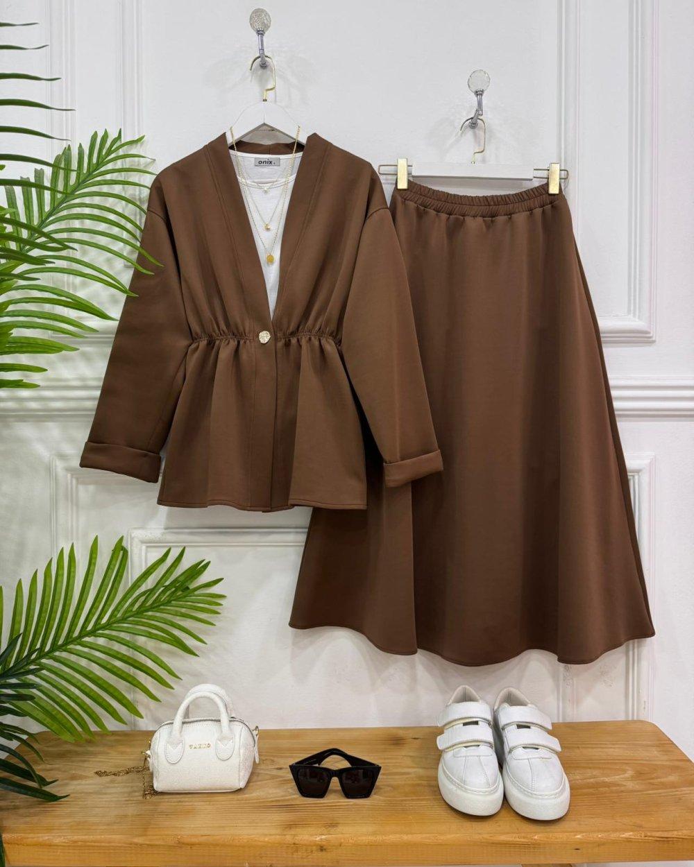 Yeni Sezon-Tok durur iç göstermez-Ceket ön kısmı gold düğmelidir-Etek bel kısmı lastiklidir