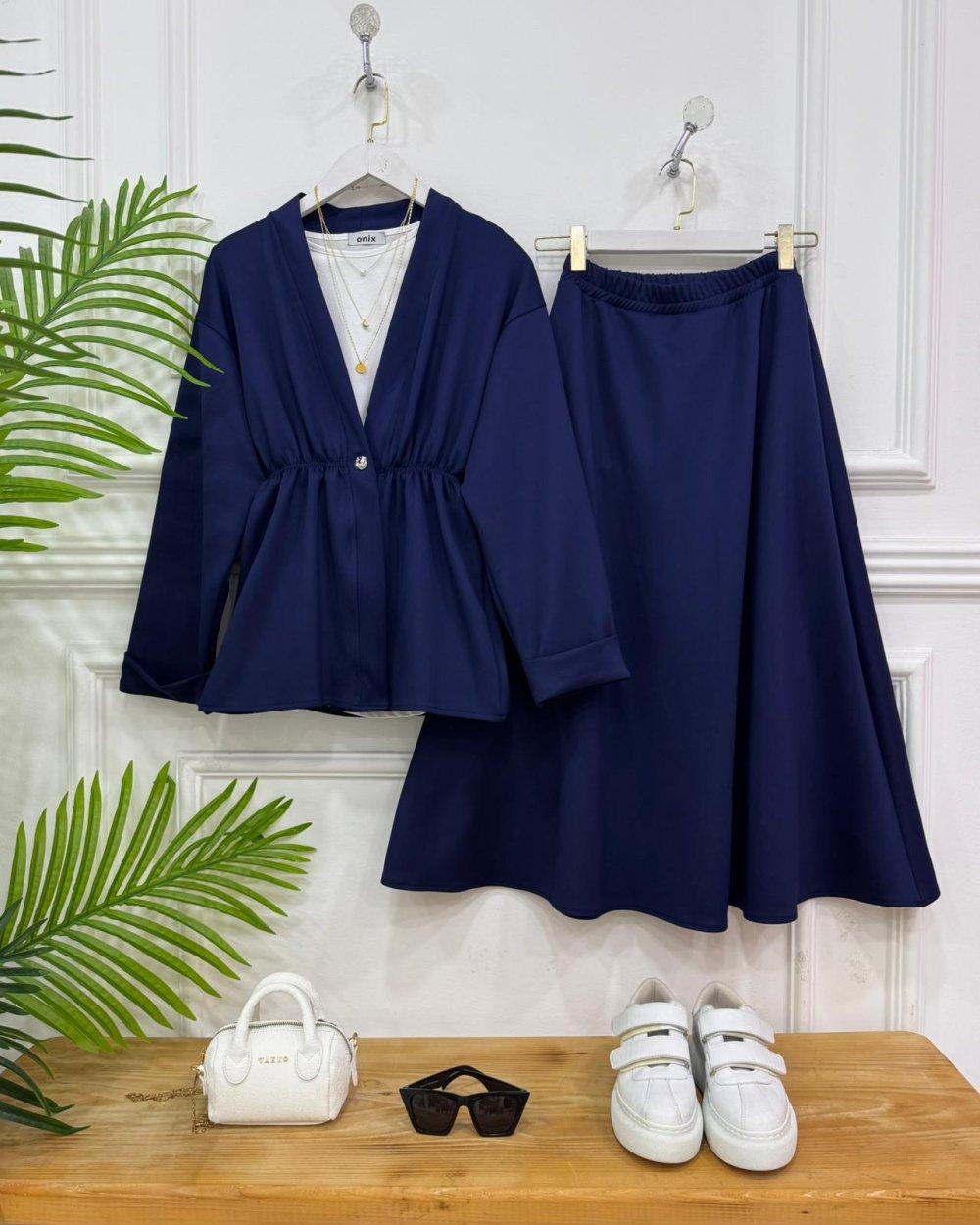 Yeni Sezon-Tok durur iç göstermez-Ceket ön kısmı gold düğmelidir-Etek bel kısmı lastiklidir