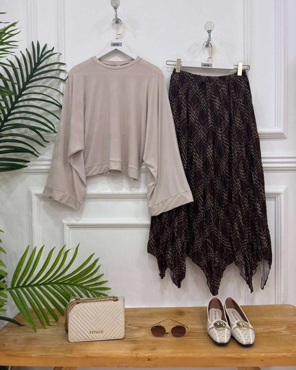 Yeni sezon-Bel kısmı lastiklidir,etek uçları ,dilimli ve crush pliselidir,astarlıdır,badi yarasa koldur