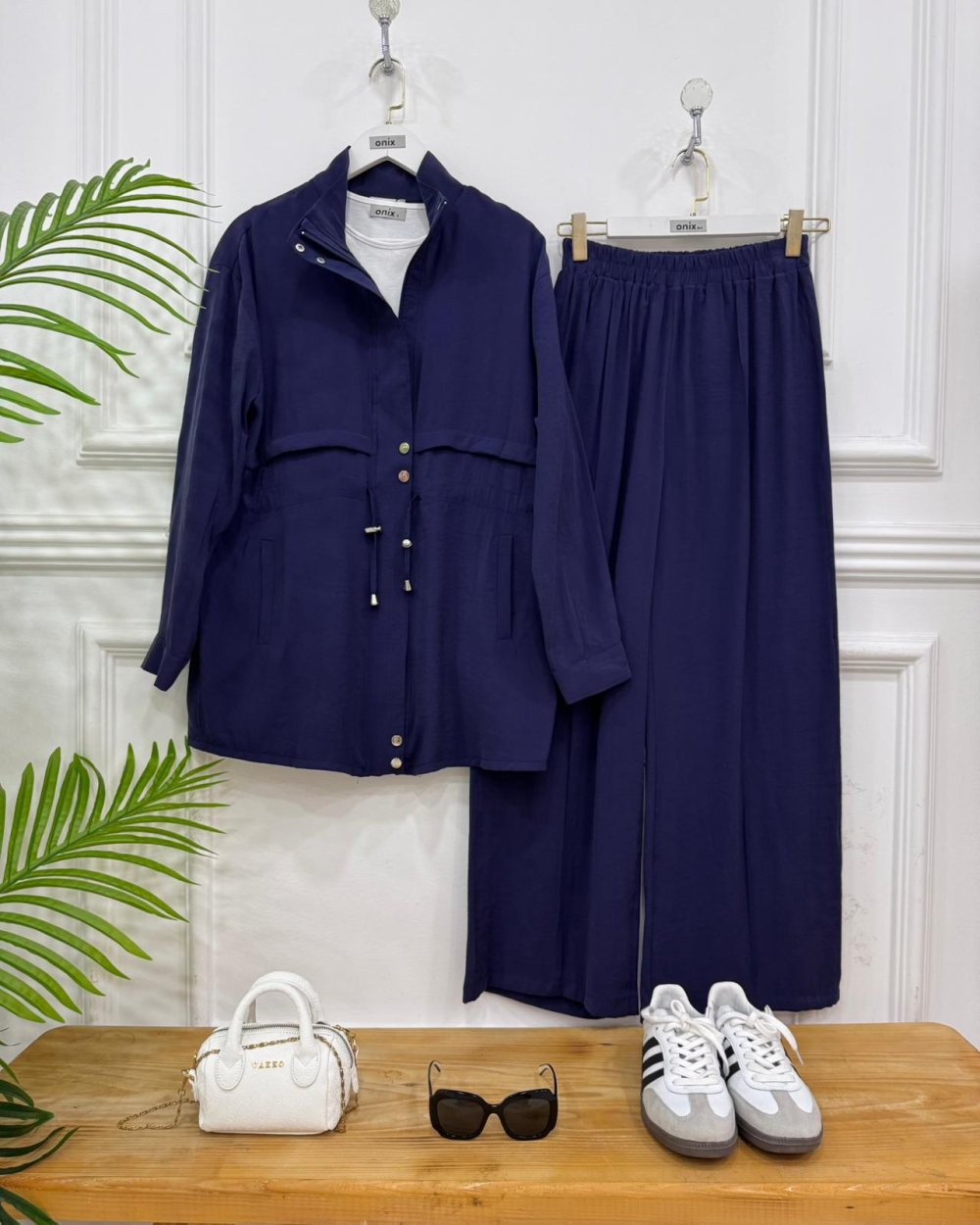 Yeni sezon-ön kısmı fermuarlı ve çıtçıtlıdır- ceplidir,bilek kısmı manşetli çıtçıtlıdır,bel kısmı sıkıltırılabilen tünelli bağcıklıdır-pantolon bel lastiklidir ,bol paçadır