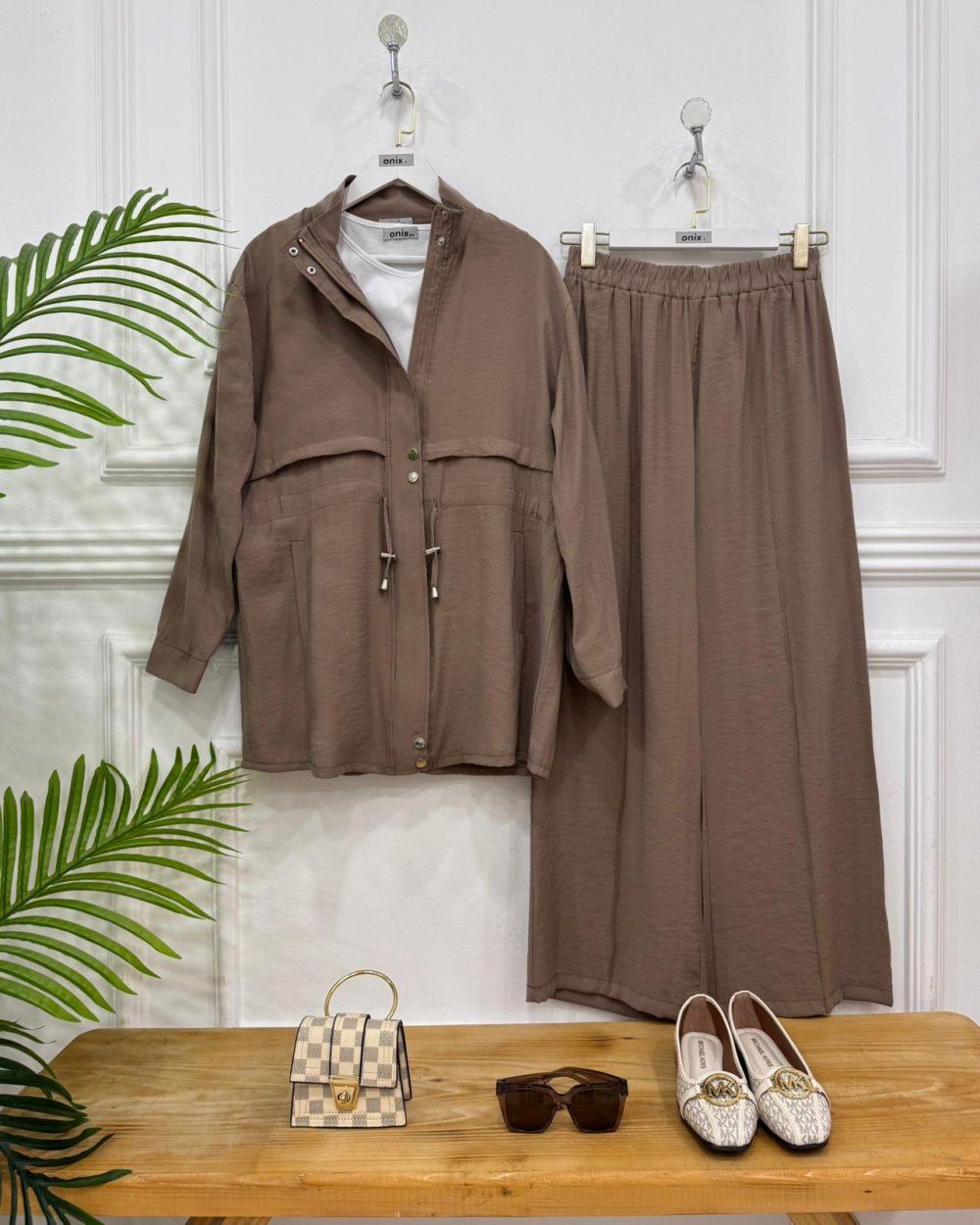 Yeni sezon-ön kısmı fermuarlı ve çıtçıtlıdır- ceplidir,bilek kısmı manşetli çıtçıtlıdır,bel kısmı sıkıltırılabilen tünelli bağcıklıdır-pantolon bel lastiklidir ,bol paçadır
