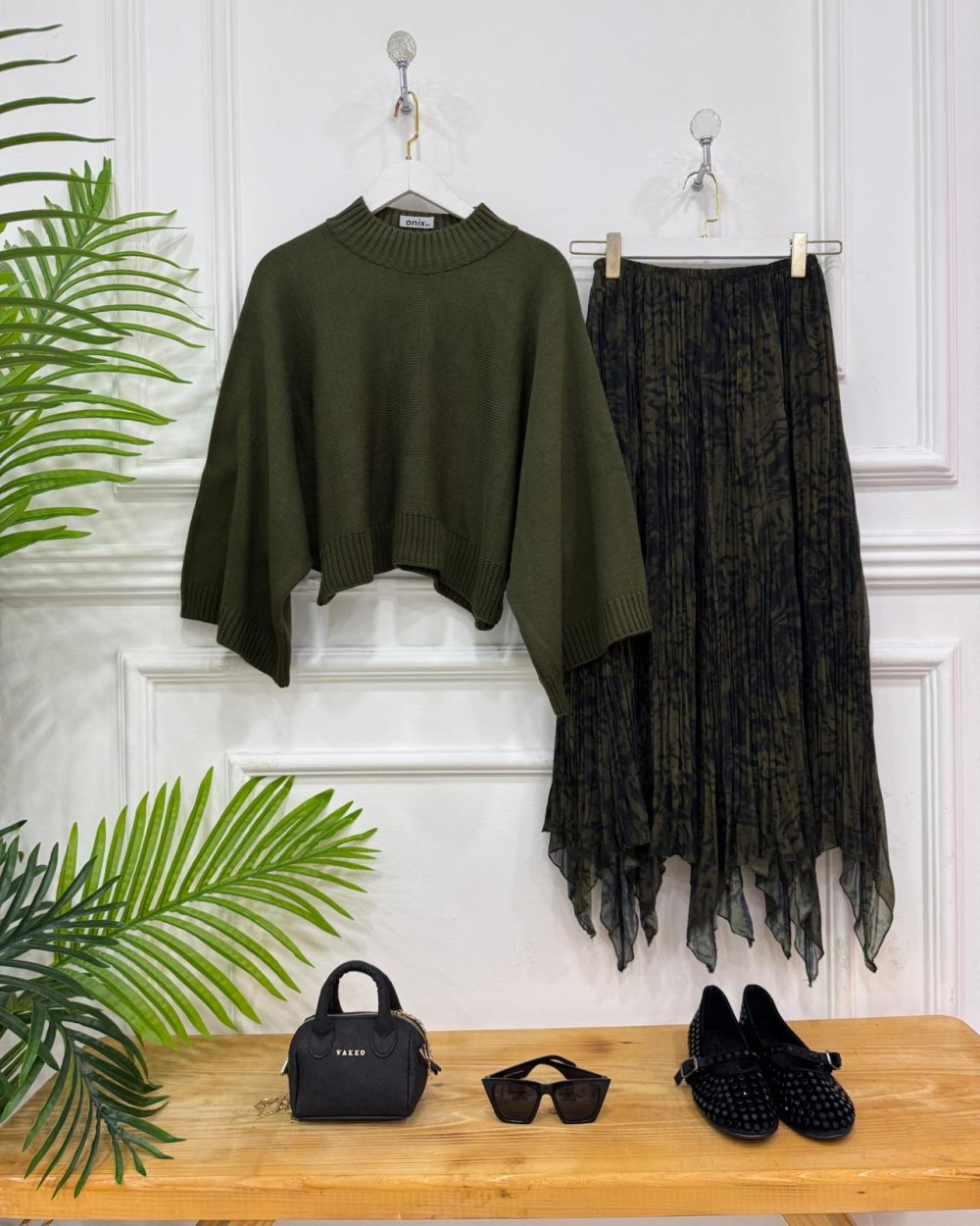 İzinaz ikili kombin Haki kazak,haki etek