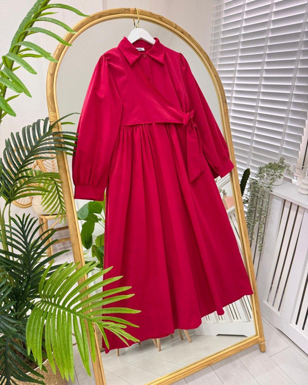 Yeni sezondur-Yakalıdır-Ön kısmı beline kadar düğmelidir-Ön kısmında çapraz bağlamalı kendi kumaşından sabit  kemeri vardır-Bel kısmı büzgülüdür-bilek kısmı düğmelidir