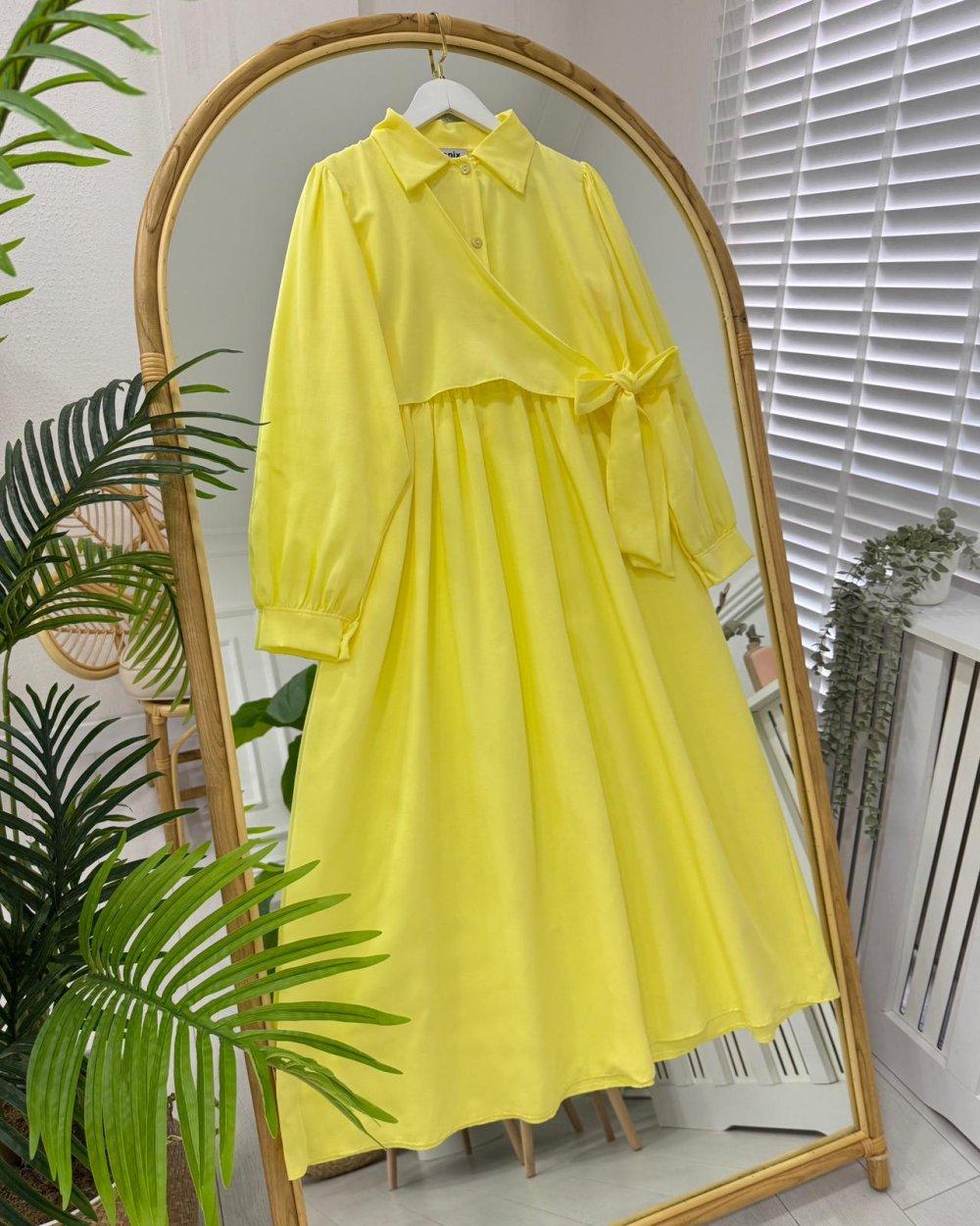 Yeni sezondur-Yakalıdır-Ön kısmı beline kadar düğmelidir-Ön kısmında çapraz bağlamalı kendi kumaşından sabit  kemeri vardır-Bel kısmı büzgülüdür-bilek kısmı düğmelidir