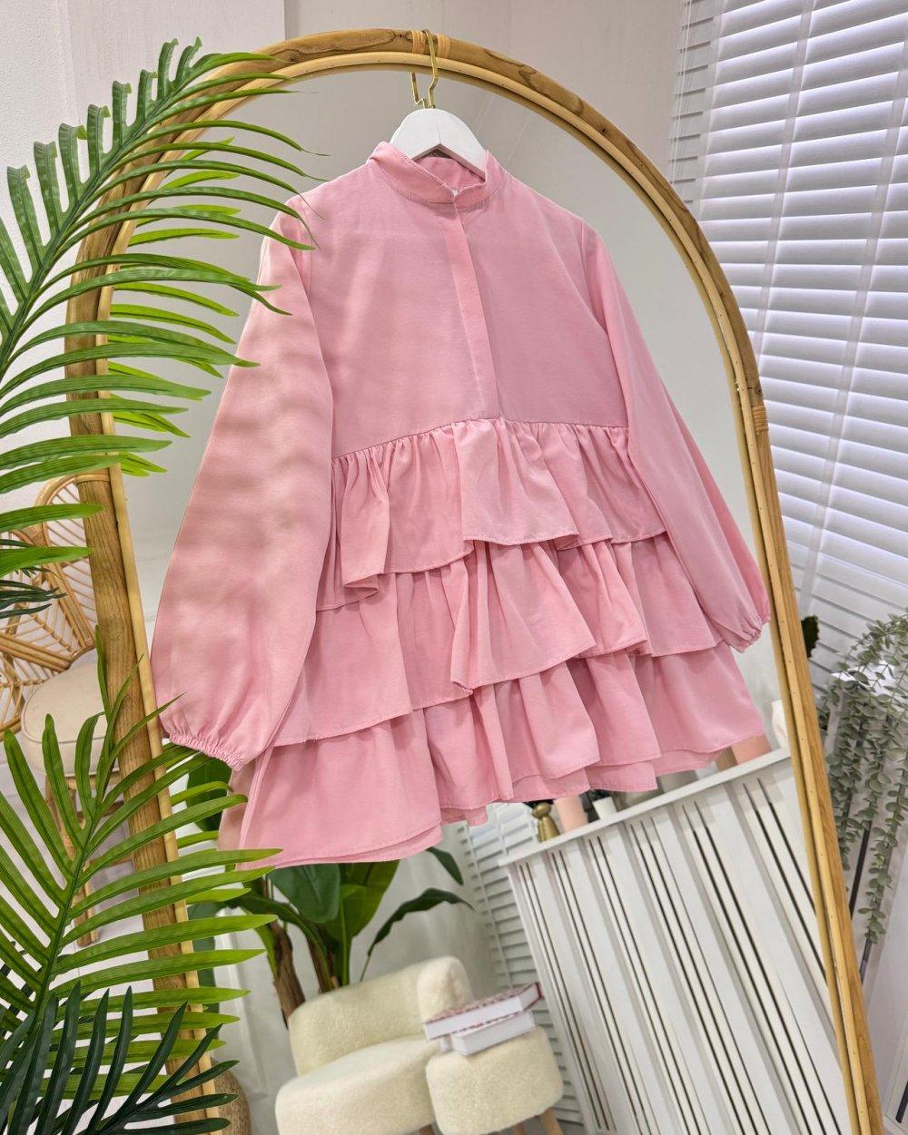 Yeni sezon-bilek kısmı lastiklidir-ön kısmı bele kadar gizli düğmelidir-Yakası hakim yakadır-Ön ve arka kısmı Kat kat fırfırlıdır