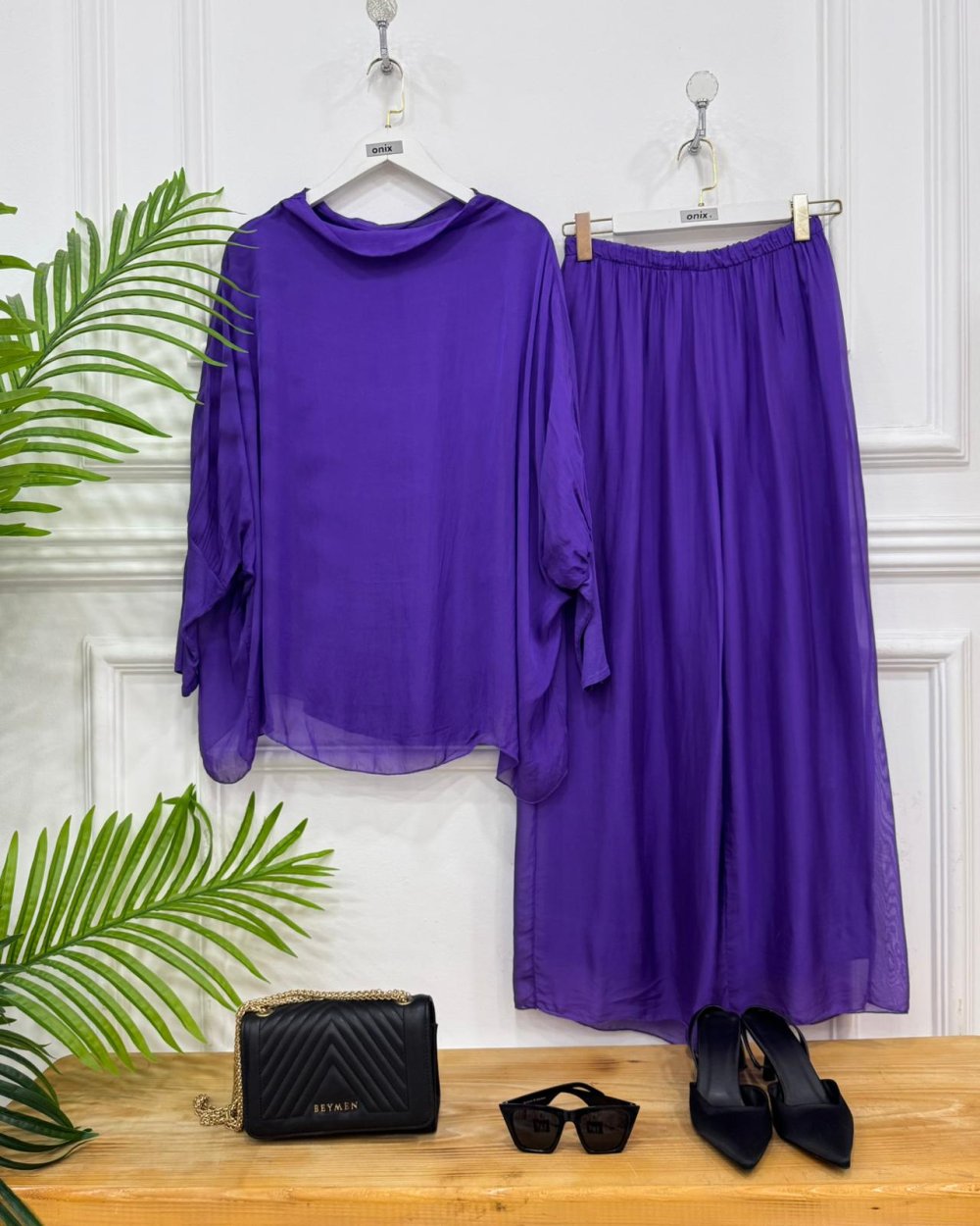 Yeni sezondur-Tamamı astarlıdır-Degajr yakadır-bilek kısmı ribanalıdır-pantolon bel kısmı lastiklidir