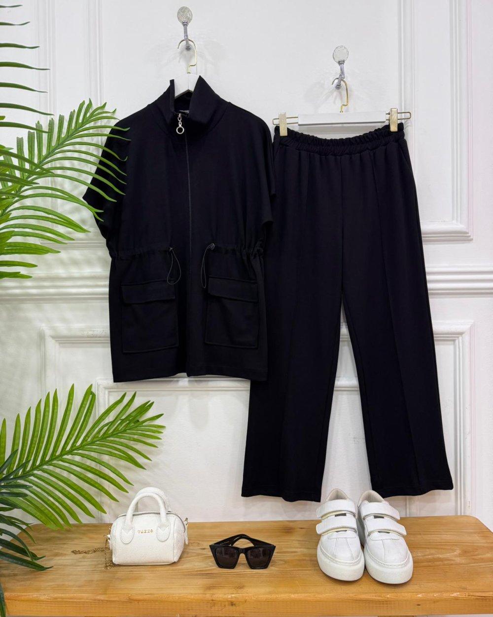 Yeni Sezon-Yelek ön kısmı fermuarlıdır ,ceplidir,bel kısmı sıkıştırılabilen tünelli bağcıklıdır pantolon ceplidir,bel kısmı lastiklidir,ön kısmı çıma dikişlidir,Yumuşacık dükümlü likralı bir kumaşı vardır