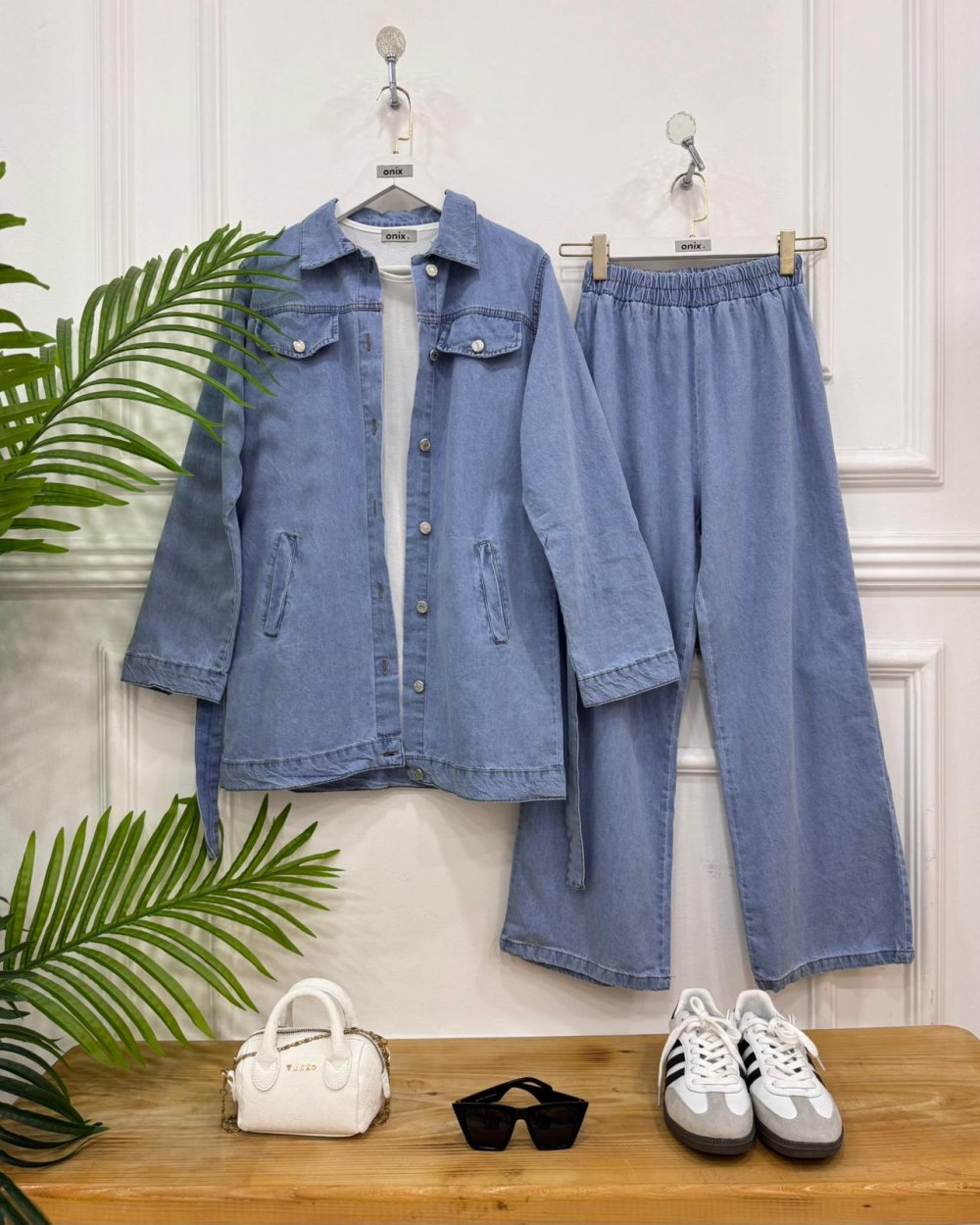 Yeni sezon-ön kısmı düğmelidir- ceplidir,bilek kısmı manşetli düğmelidir-pantolon bel lastiklidir ,bol paçadır