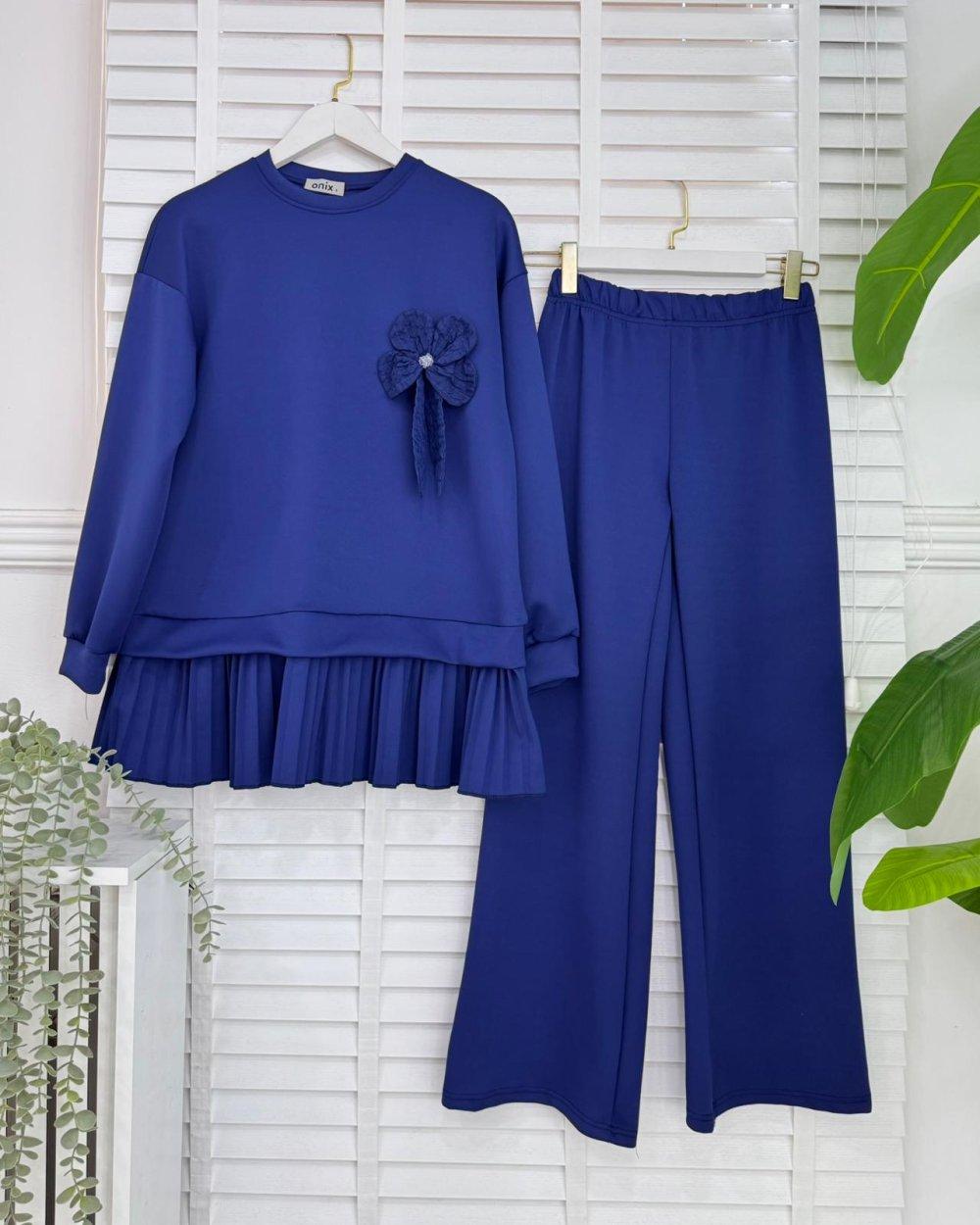 Yeni Sezon-Etek ucu plise detaylıdır-Ön Kısmında çiçek  vardır-pantolon bel kısmı lastiklidir