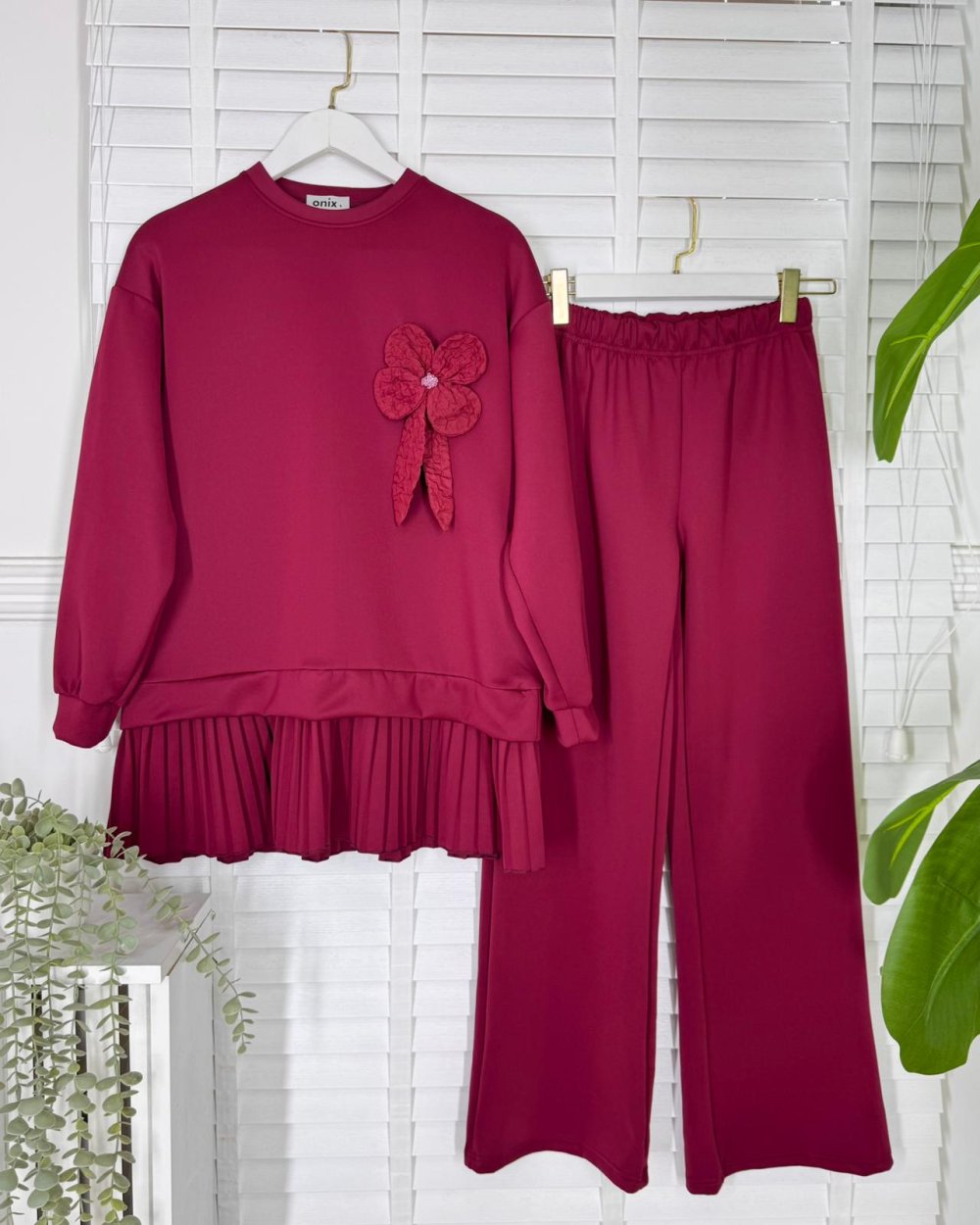 Yeni Sezon-Etek ucu plise detaylıdır-Ön Kısmında çiçek  vardır-pantolon bel kısmı lastiklidir