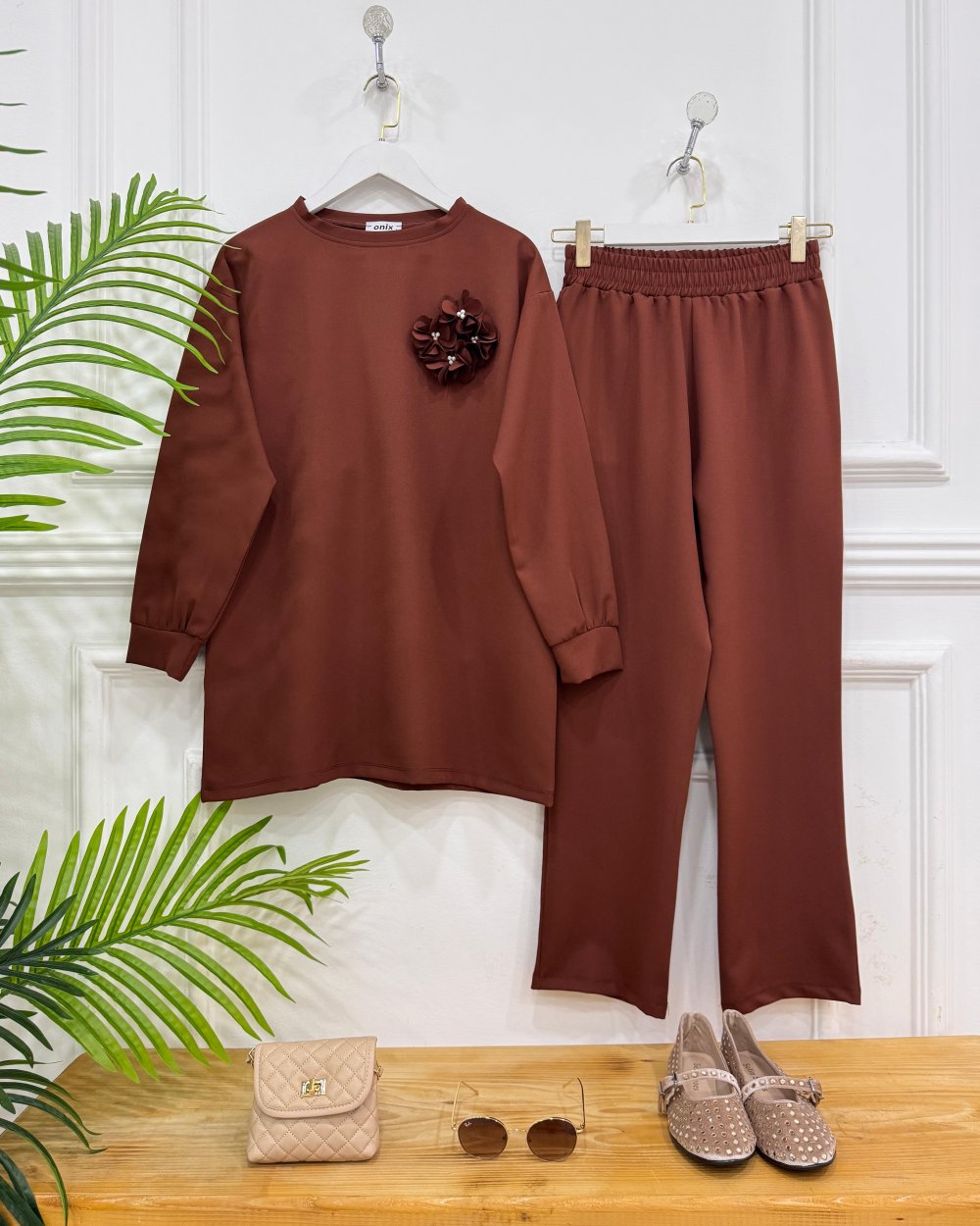 Yeni sezon-iğnelikli Çiçek detaylıdır bilek kısmı manşetlidir-Pantolon bel kısmı lastiklidir