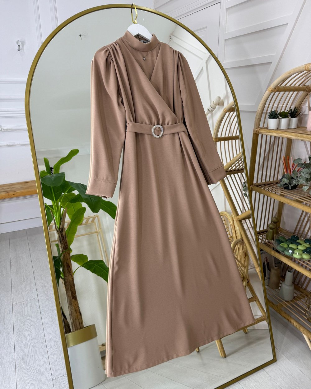 Yeni sezon-Ön kısmı kruvaze şeklindedir-Taşlı tokalı seyyar kemerlidir-Enseden fermuarlıdır
