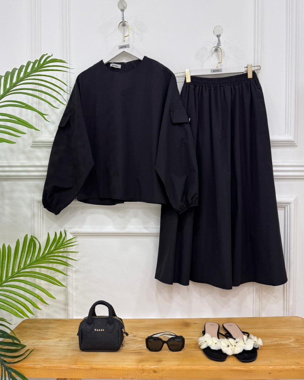 Yeni sezon-Etek ceplidir,bel kısmı lastiklidir,astarsızdır-Gömlek balon koldur,bilek kısmı lastiklidir,kolunda süs cep kapağı vardır,enseden fermuarlıdır