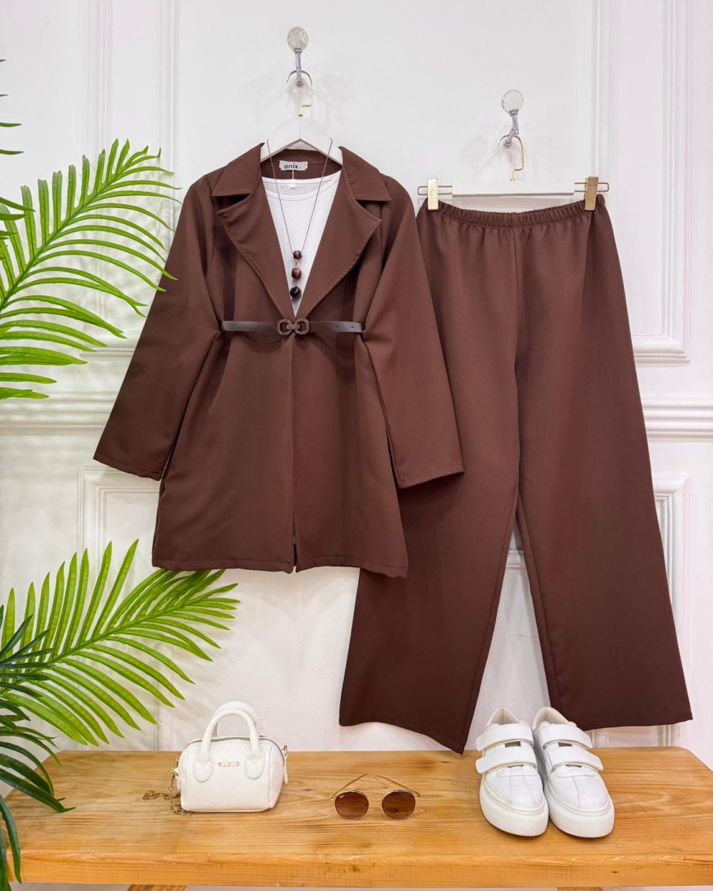 Layza ceketli İkili takım kahverengi