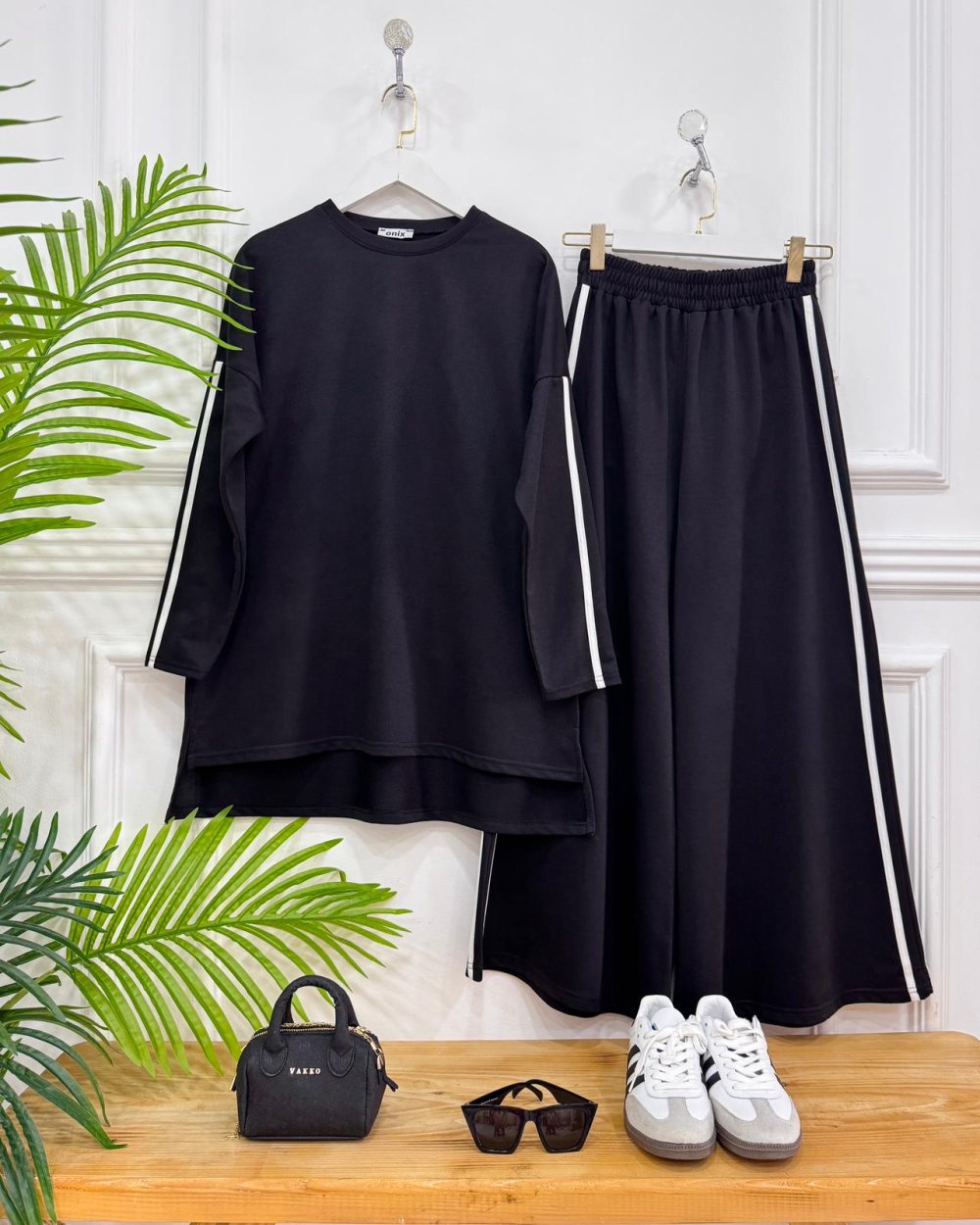 Yeni Sezon-Pantolon un yan kısımları ve Tuniğin kol üstünde dikme şerit detayları vardır-Pantolon bol paçadır ve  bel kısmı lastiklidir