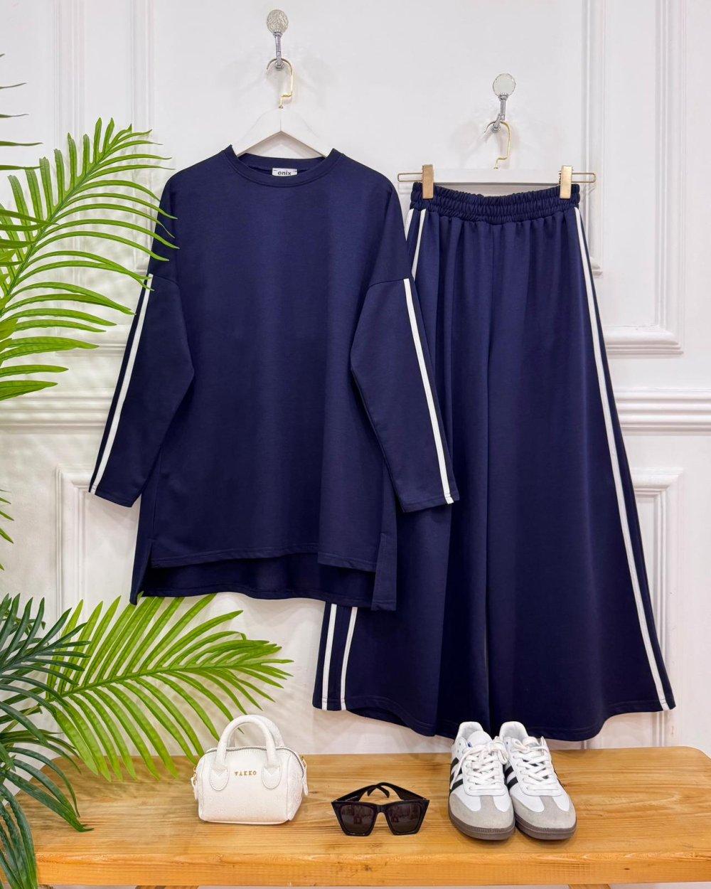 Yeni Sezon-Pantolon un yan kısımları ve Tuniğin kol üstünde dikme şerit detayları vardır-Pantolon bol paçadır ve  bel kısmı lastiklidir