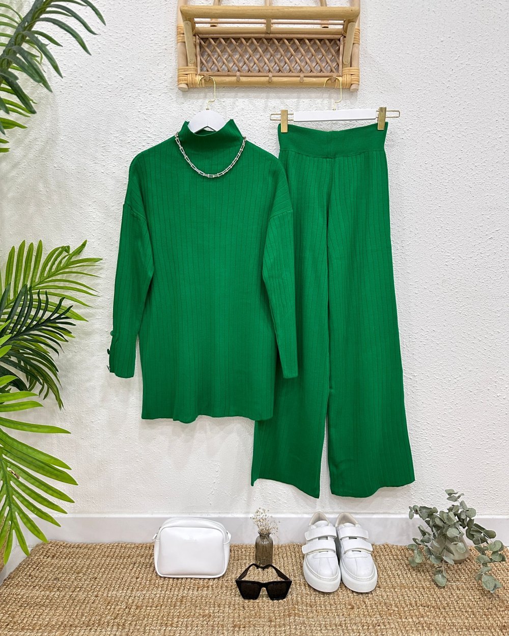 Yeni sezondur-Çift kat çelik örme trikodur iç göstermez-Tok durur-Dik yakadır-Kol üstünde düğme detayı vardır-Pantolon un bel kısmı  çift kat lastiklidir