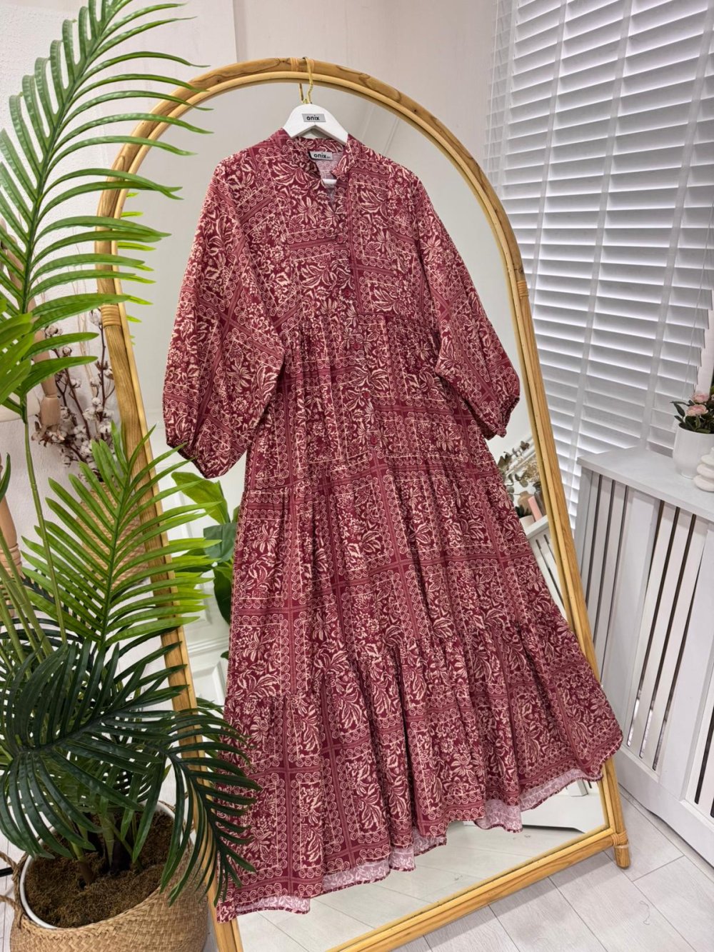 Yeni sezondur-Ön kısmı yarıya kadar düğmelidir-Etek kısmı belden itibaren katlı büzgülüdür -Bilek kısmı lastiklidir-Salaştır