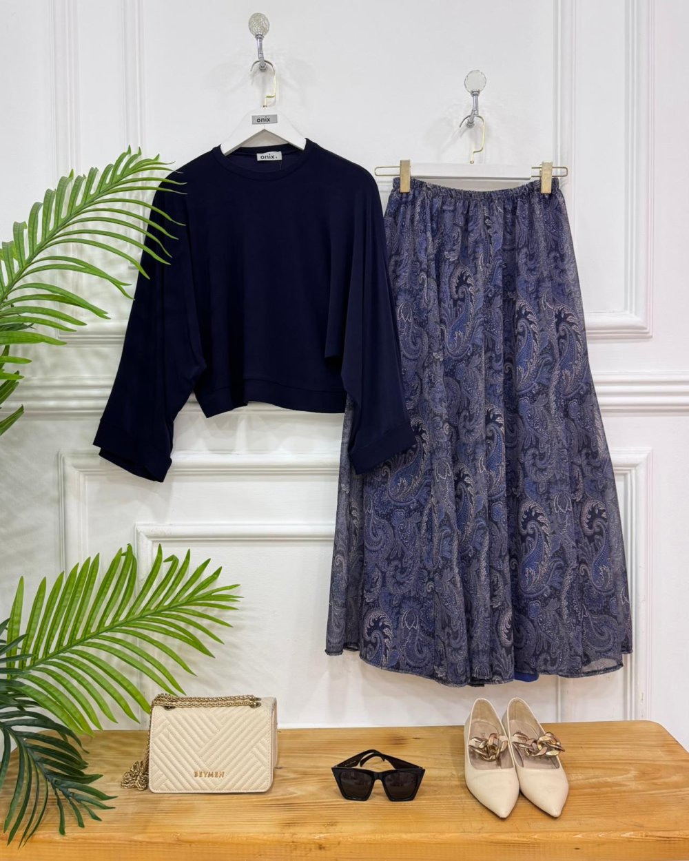 Yeni sezon-Etek Astarlıdır-Bel kısmı lastiklidir,parçalı  kesimdir-Bluz yarasa koldur