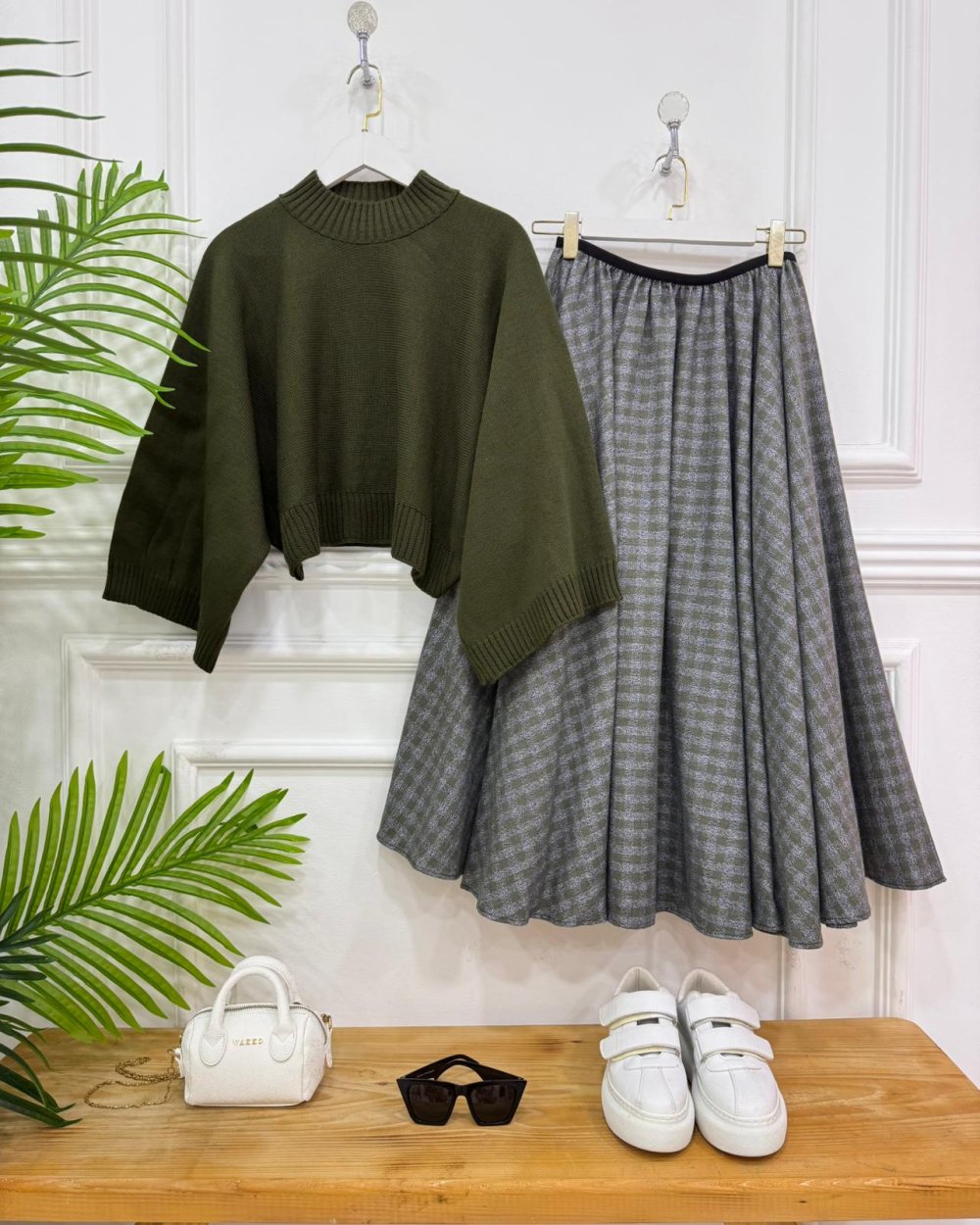Yeni sezon-Etek ve kazak olarak ikili kombindir-Etek Bel kısmı lastiklidir, tam mevlana kesimdir -Kazak yarasa koldur