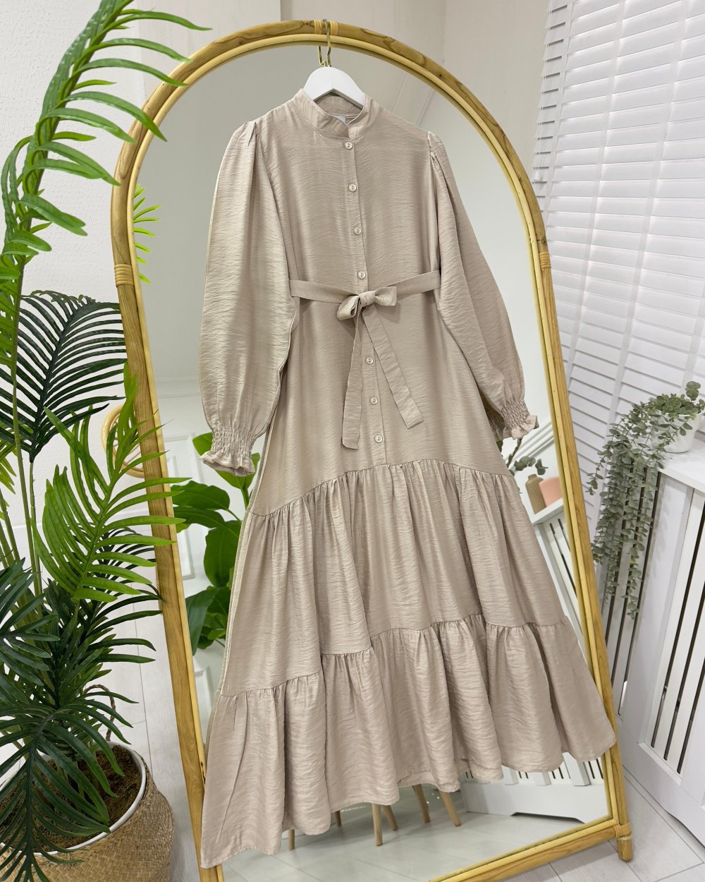 Yeni sezon-Ön kısmı düğmelidir-etek ucu kat kat büzgülüdür,dökümlüdür-kendi kumaşından kemerlidir-Hakim yakadır
