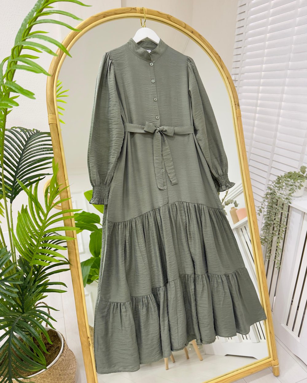 Yeni sezon-Ön kısmı düğmelidir-etek ucu kat kat büzgülüdür,dökümlüdür-kendi kumaşından kemerlidir-Hakim yakadır