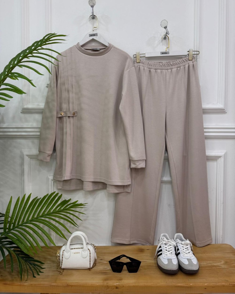 Yeni Sezon-Tunik ön kısmında çıma detayı vardır,yan kısmı minik yurtmaçlıdır-Pantolon bol paçadır bel kısmı lastiklidir önü çımalıdır