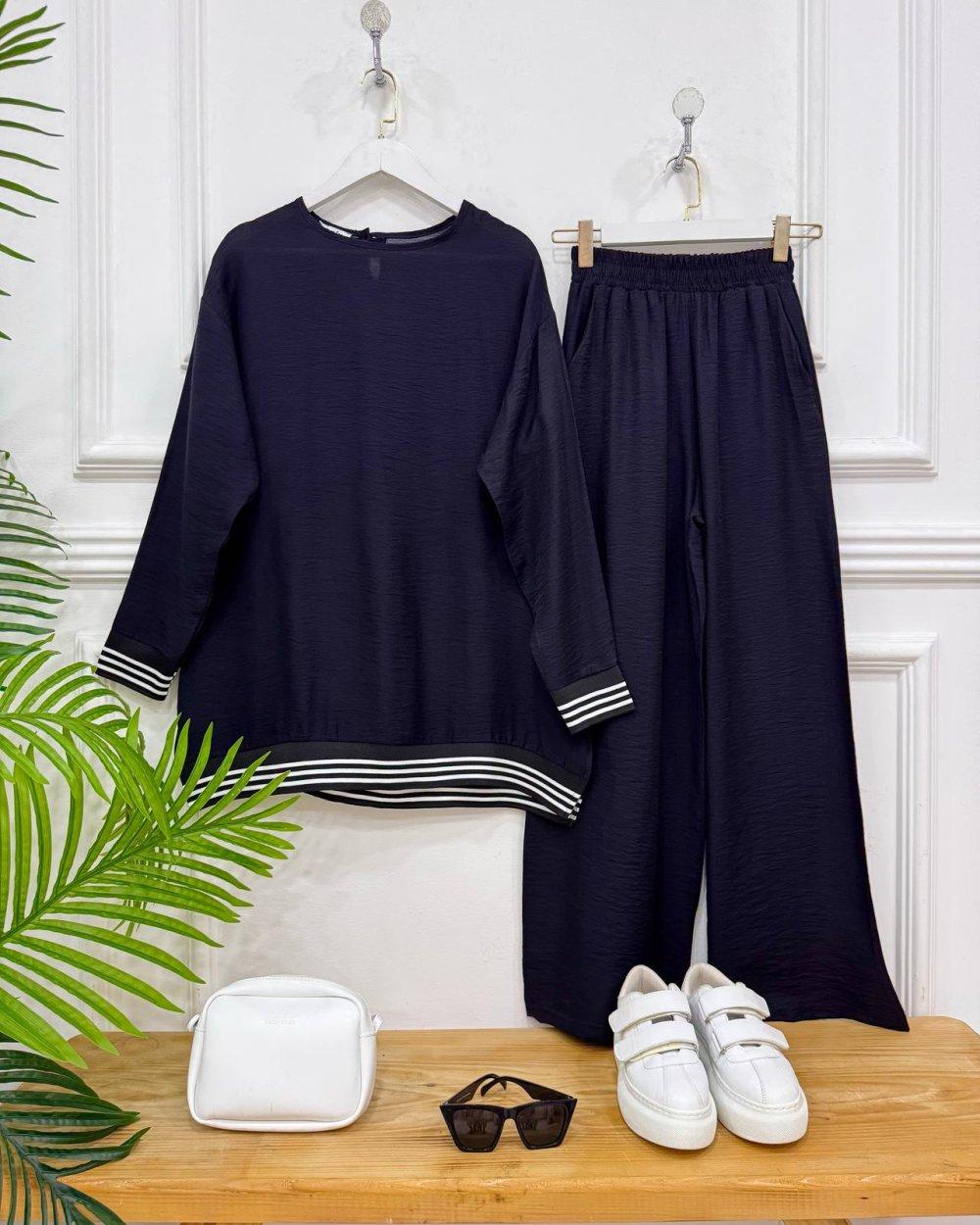 Yeni sezon-yazlıktır-ikili takımdır-etek ucu ve bilek kısmı ribanalıdır-Yan kısmı yurtmaçlıdır-Pantolon bol paçadır-ceplidir ve bel kısmı lastiklidir