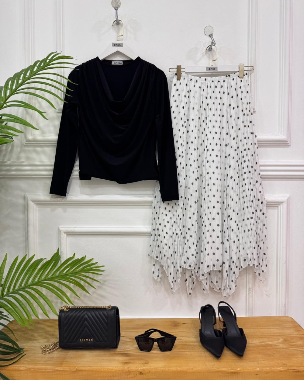 Pelin İkili kombin beyaz etek siyah bluz