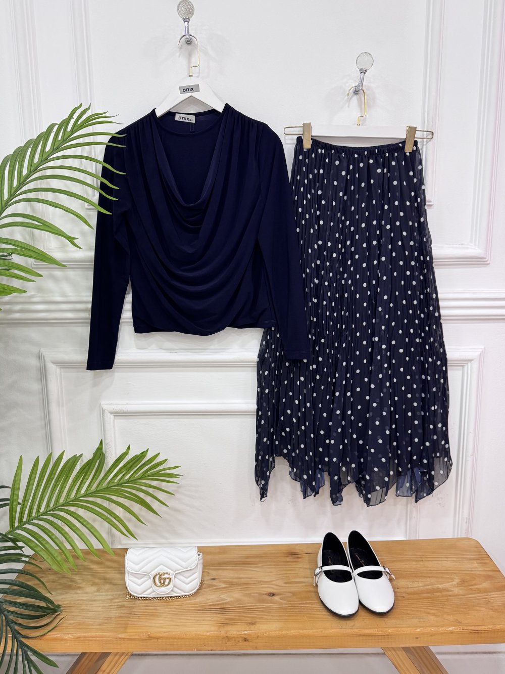 Pelin İkili kombin lacivert etek lacivert bluz