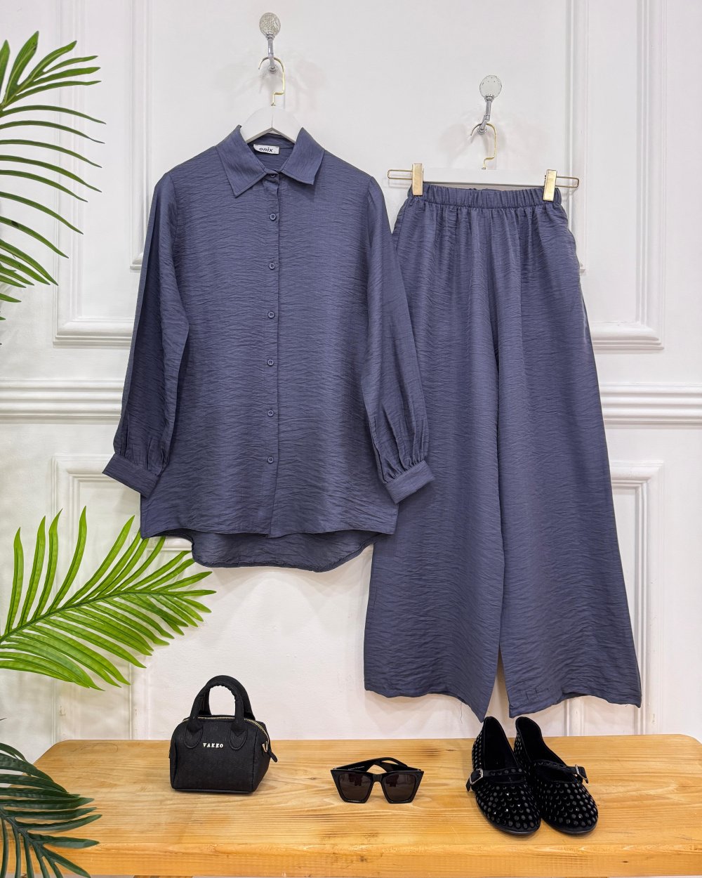 Yeni sezon-Yazlıktır-Gömlek ve pantolon olarak ikili takımdır-ön kısmı ve manşeti düğmelidir-pantolon bol paçadır, bel kısmı lastiklidir