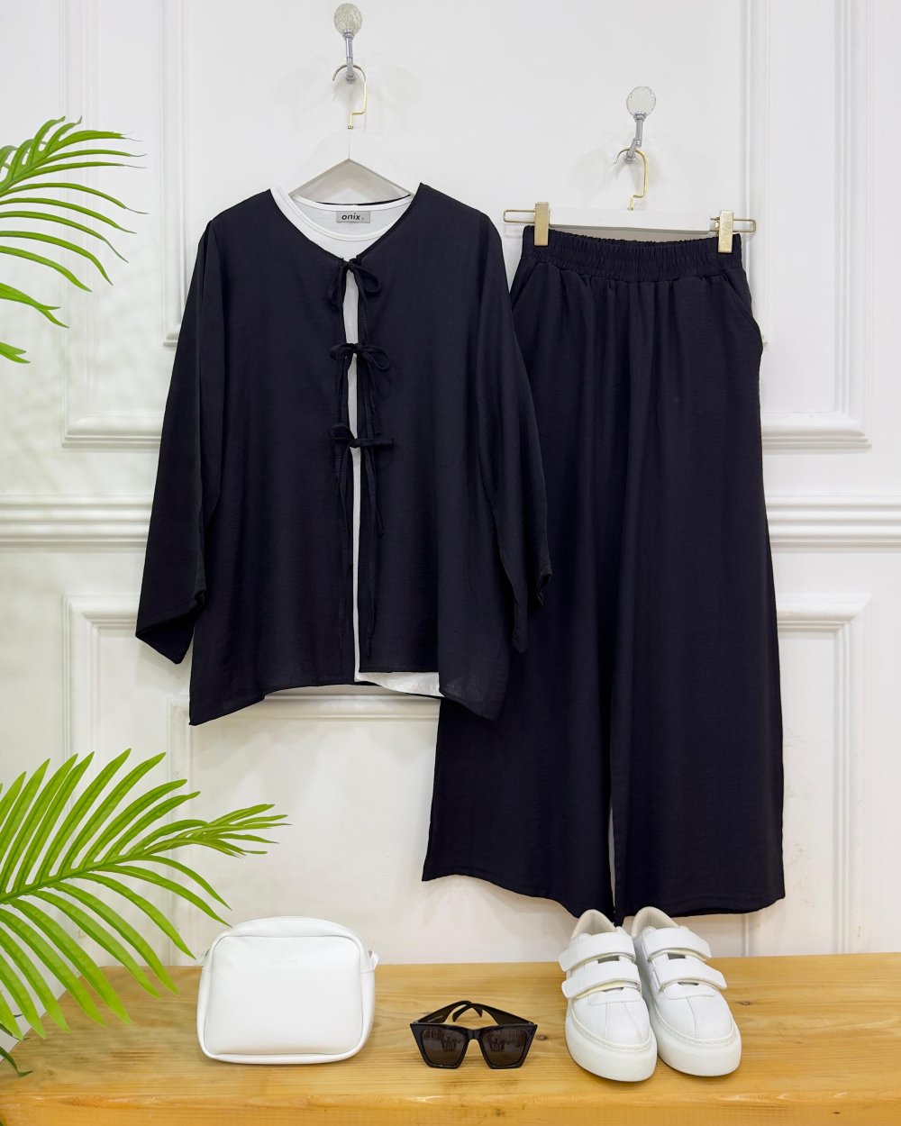 Yazlıktır-Kimono ve pantolon olarak ikili takımdır-Kimononun ön kısmı üç adet bağcıklıdır-Pantolon  Ceplidir- bol paçadır,bel kısmı lastiklidir