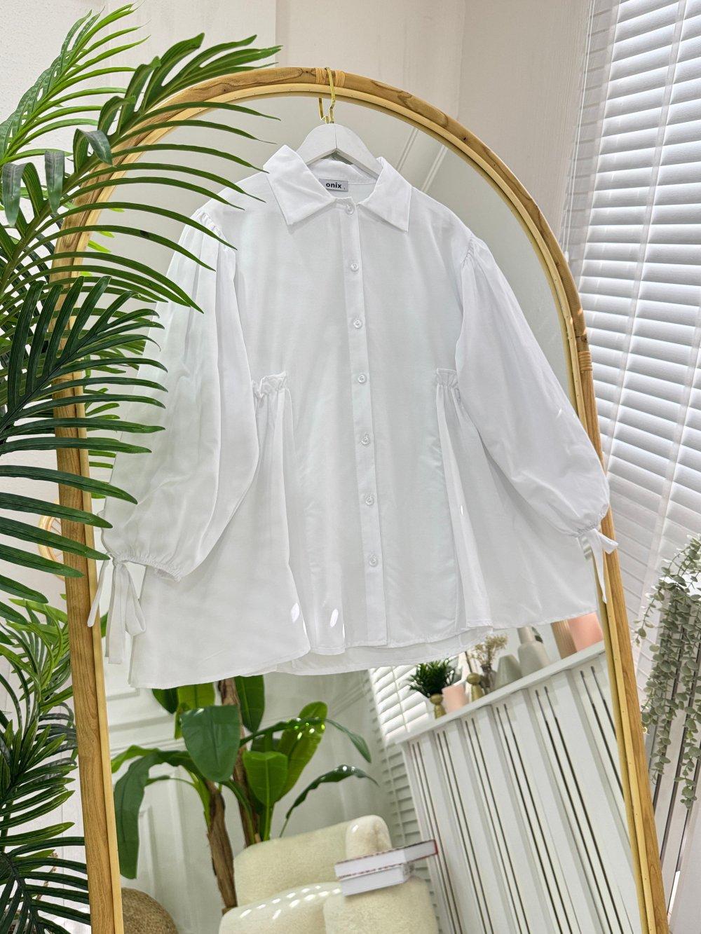 Yeni sezon-ön kısmı düğmelidir-Bilek kısmı lastikli ve ayrıca bağcıklıdır-Balon koldur-Salaş modeldir-Bel kısmından fırfır detaylıdır