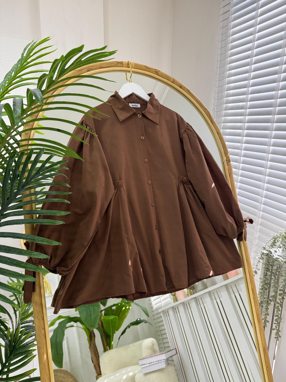 Yeni sezon-ön kısmı düğmelidir-Bilek kısmı lastikli ve ayrıca bağcıklıdır-Balon koldur-Salaş modeldir-Bel kısmından fırfır detaylıdır