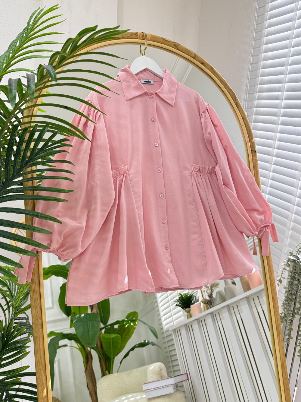 Yeni sezon-ön kısmı düğmelidir-Bilek kısmı lastikli ve ayrıca bağcıklıdır-Balon koldur-Salaş modeldir-Bel kısmından fırfır detaylıdır
