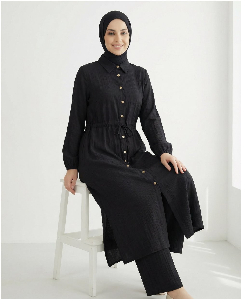 Yeni sezon-Tunik Ön kısmı düğmelidir-Yan kısımları yırtmaçlıdır-bilek kısmı lastiklidir-Pantolon bel kısmı lastiklidir bol paçadır