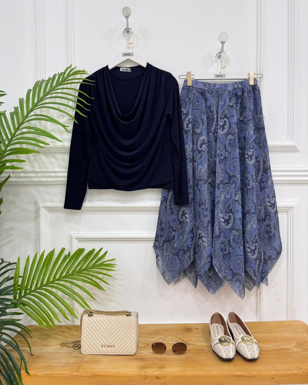 Şermin İkili kombin mavi etek lacivert badi