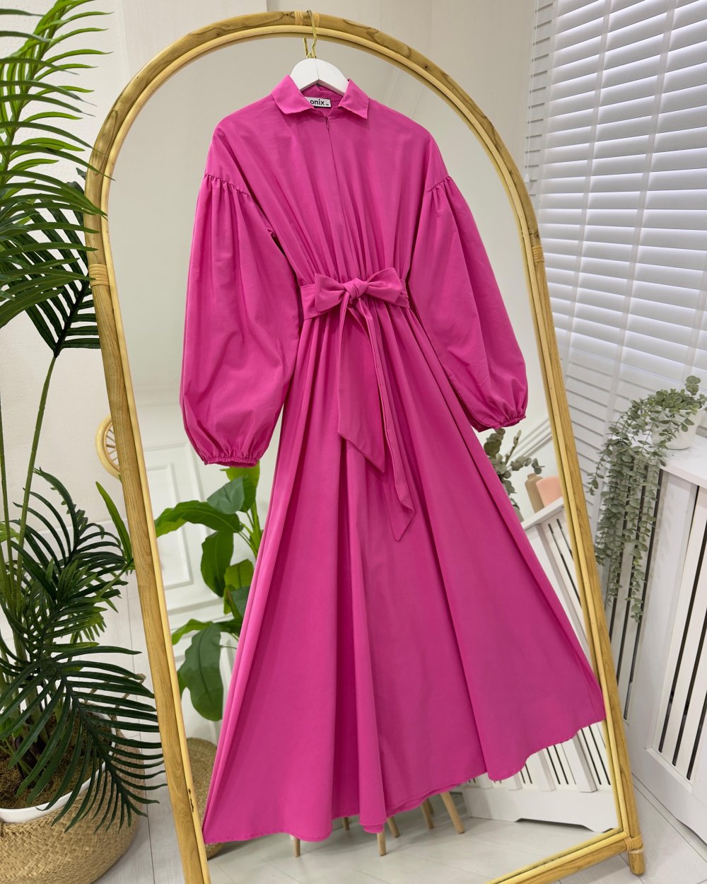 Yeni sezondur-Yakalıdır-Ön kısmı beline kadar gizli fermuarlıdır-Kendi kumaşından kalın kemerlidir-Bilek ve bel kısmı lastiklidir-Mevlana kesimdir