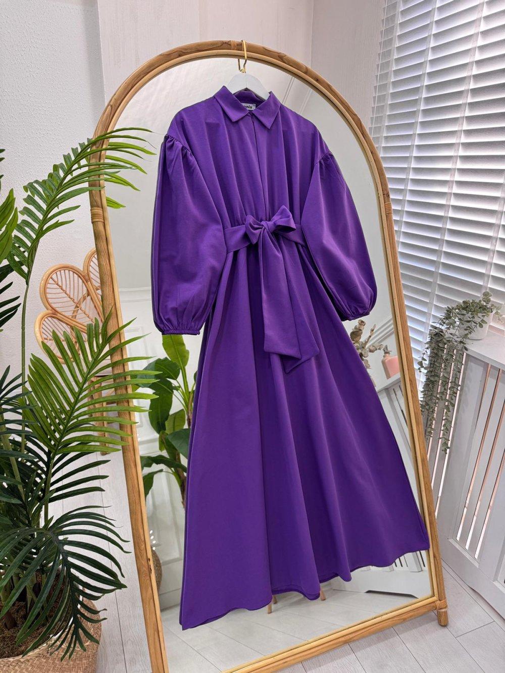 Yeni sezondur-Yakalıdır-Ön kısmı beline kadar gizli fermuarlıdır-Kendi kumaşından kalın kemerlidir-Bilek ve bel kısmı lastiklidir-Mevlana kesimdir