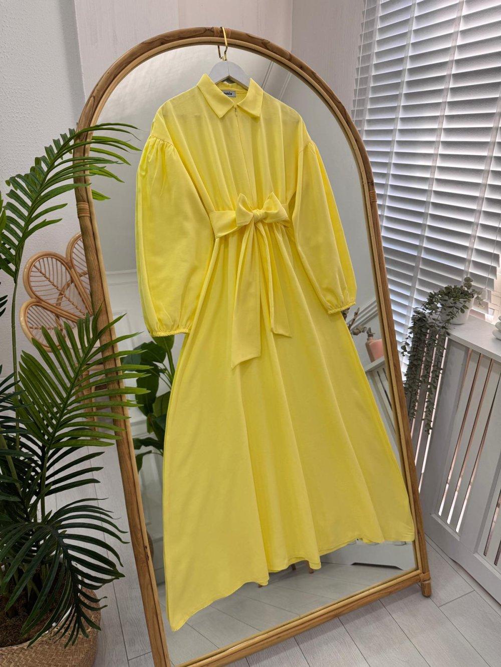 Yeni sezondur-Yakalıdır-Ön kısmı beline kadar gizli fermuarlıdır-Kendi kumaşından kalın kemerlidir-Bilek ve bel kısmı lastiklidir-Mevlana kesimdir