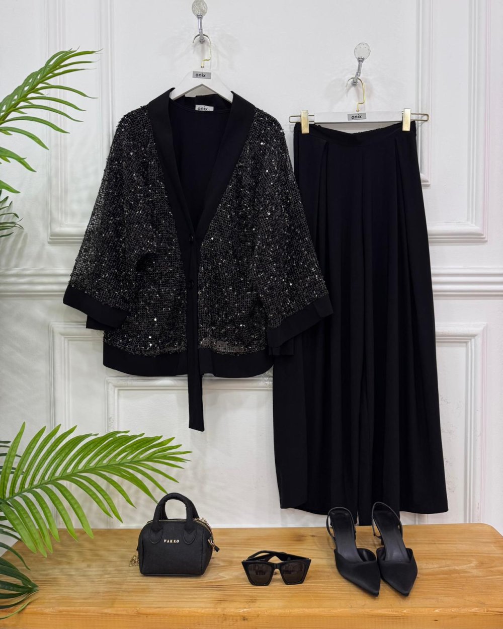 Yeni sezon-hırka bluz ve pantolon olarak üçlü takımdır-pantolon bel kısmı lastiklidir-Hırkanın ön kısmı iki düğmelidir